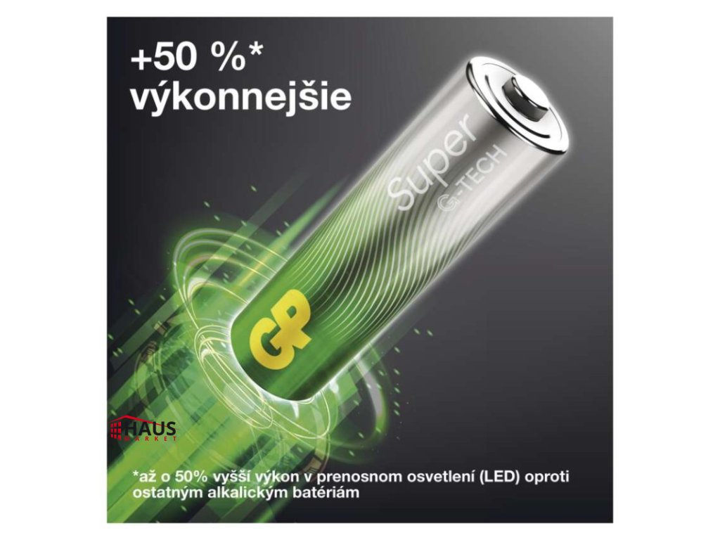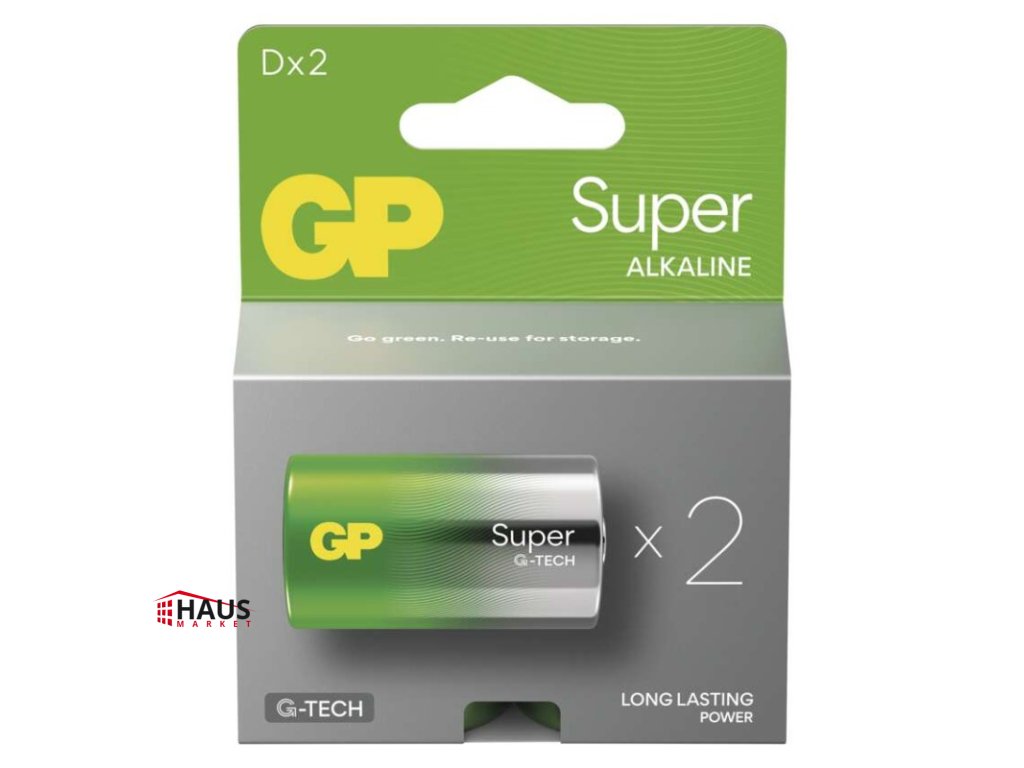 chemické zloženie: alkalické|hmotnosť: 140 g|kapacita: neuvádza sa|kategória/rada: Super Alkaline|max. skladovateľnosť: 10 rokov|možnosť nabíjania: nie|napätie: 1,5 V|počet nabíjacích cyklov: nenabíjacie|predajný obal: 2 ks, papierová krabička|prevádzková teplota: -18 °C až +50 °C|rozmer: 34,2 × 61,5 mm|typové označenie: LR20 (veľké mono, D)|veľkosť batérie: D|značka: GPDodatočné parametre