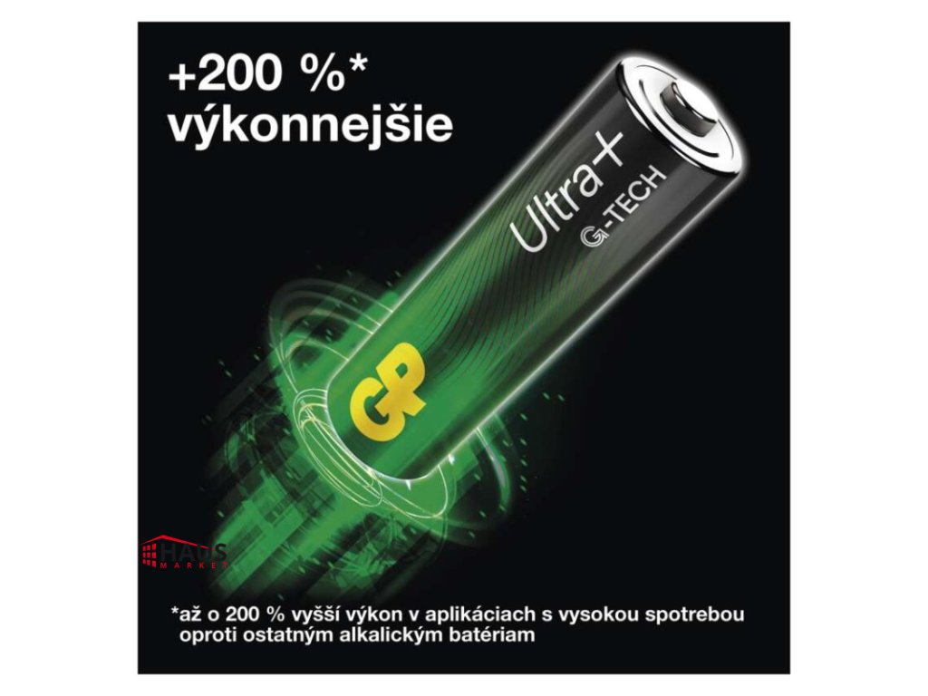 chemické zloženie: alkalické|hmotnosť: 13 g|kapacita: neuvádza sa|kategória/rada: Ultra Plus Alkaline|max. skladovateľnosť: 10 rokov|možnosť nabíjania: nie|napätie: 1,5 V|počet nabíjacích cyklov: nenabíjacie|predajný obal: 4 ks, papierová krabička|prevádzková teplota: -20 °C až +54 °C|rozmer: 10,5 × 44,5 mm|typové označenie: LR03 (mikrotužka, AAA)|veľkosť batérie: AAA|značka: GPDodatočné parametre