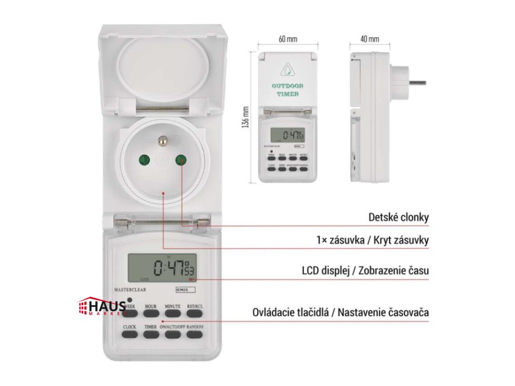 Časovač – digitálna spínacia zásuvka vonkajšia IP44