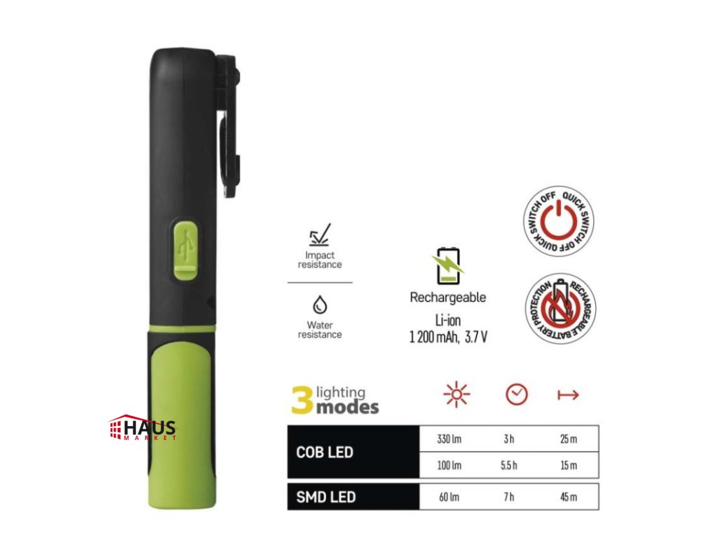 COB LED + SMD LED nabíj. svietidlo P4537, 330 lm, 1200 mAh