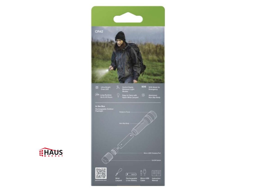 CREE LED nabíj. svietidlo GP CR42, 1000 lm, 2600 mAh, fokus + Li-ion 18650