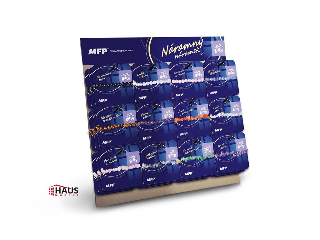 Display s 36 náramkami rady Sentiment z kolekcie Gifty ponúka širokú škálu doplnkov zameraných na pozitívne životné hodnoty a duchovnú silu. Každý náramok je zastúpený trikrát, čo poskytuje dostatočný výber pre rôzne príležitosti a preferencie. Polovicu náramkov tvoria opracované kamene (korálky), zatiaľ čo druhá polovica pozostáva z prírodných úlomkov, ktoré dodávajú každému náramku jedinečný vzhľad. Náramky sú vyrobené z prírodných kameňov, z ktorých každý nesie vlastný význam a symboliku. Kamene boli starostlivo vybrané tak, aby vyjadrovali špecifické vlastnosti ako je láska, harmónia, ochrana, vnútorný pokoj a pozitívna sila. Vďaka pružnej gumičke sa náramky jednoducho prispôsobia väčšine zápästí, čo zaručuje pohodlie pri nosení. Okrem estetickej hodnoty sú náramky aj hlboko symbolické. Podporte svoju rovnováhu, privolajte šťastie a každý deň načerpajte pozitívnu silu – všetko v jednom elegantnom šperku, ktorý si zamilujete! OBSAH BALENIA: - 36 ks náramkov (3 x Bezpečná cesta - obsidián, 3 x Anjel strážny - krištáľ, 3 x Pre lásku a radosť - ruženín, 3 x Skvelé príležitosti - sodalit, 3 x Životná energia a elán - tigrie oko, 3 x Pevné zdravie - ametyst, 3 x Život v rovnováhe - karneol, 3 x Anjel strážny - krištáľ, 3 x Pre lásku a radosť - ruženín, 3 x Spokojná rodina - fluorit, 3 x Na nové dobrodružstvá - avanturín, 3 x Pevné zdravie - ametyst) UPOZORNENIE: Farba sa môže mierne líšiť v závislosti od prirodzených vlastností kameňa. Uvedená cena je za 1 balenie.Dodatočné parametre