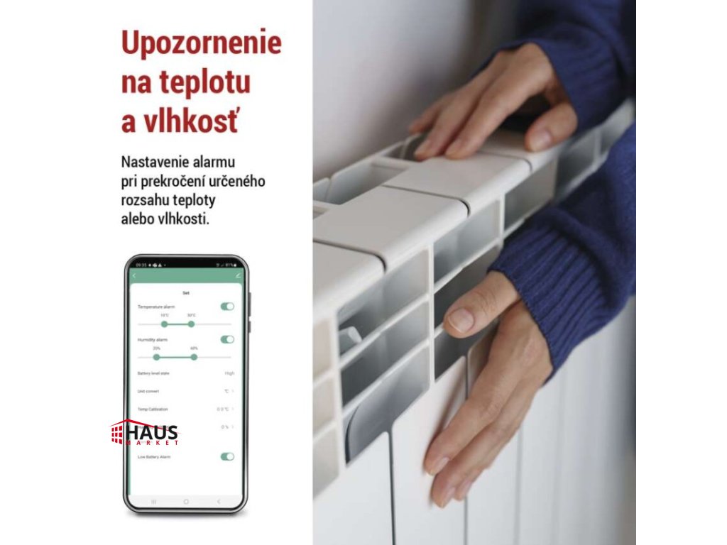 12/24 formát času: nie|budík: nie|časové pásma: nie|ďalšie funkcie: –|dátum: nie|dosah vo voľnom priestore: nie|drôtová sonda k čidlu: nie|farebný displej (black mask) podsvietený: nie|funkcie stopky: nie|hlasová komunikácia: –|hodiny: nie|inštalačný materiál: –|jazyky aplikácie: EN, CZ, SK, PL, DE, HU, SI, FR, + 60 ďalších jazykov|kalendár: nie|kompatibilita: EMOS GoSmart, TUYA, LIDL, Smartlife, otvorený systém|LED podsvietenie displeja: nie|magnet na pripevnenie: nie|min. a max. teplota: nie|možné ďalšie čidlo: nie|možnosť nastavenia jednotky teploty °C/°F: áno|možnosť zavesenia na stenu: áno|napájanie čidla: nie|napájanie stanice: 1× 3 V CR2032 (súčasťou balenia)|notifikácie do mobilnej aplikácie: áno|odpočet času max. od: nie|opakované budenie: nie|ovládanie hlasovými asistentmi: ano (Amazon Alexa, Google Assistant)|pamäť poslednej hodnoty: nie|podporované OS: Android, iOS|predajný obal: 1 ks, krabička|prenosová frekvencia: nie|prevedenie teplomera: bezdrôtové – smart|protokol: Zigbee 3.0|rozmer čidla: nie|rozmer hlavnej jednotky: 26 × 13 × 52 mm|sieťový adaptér: nie|teplotná výstraha: áno|teplotný index: nie|trend teploty: nie|trend tlaku: nie|trvalé podsvietenie: nie|veľkosť displeja: nie|vnútorná teplota: -20 °C až +60 °C, rozlíšenie 0,1 °C|vnútorná vlhkosť: 0 % až 99 % RV, rozlíšenie 1 %|vonkajšia teplota: nie|vonkajšia vlhkosť: nieDodatočné parametre
