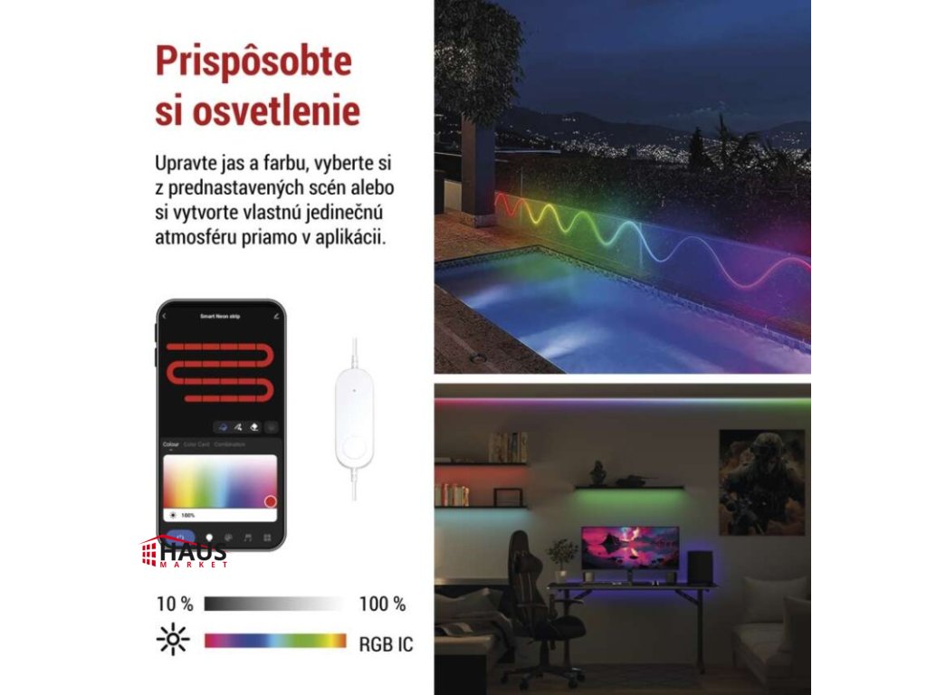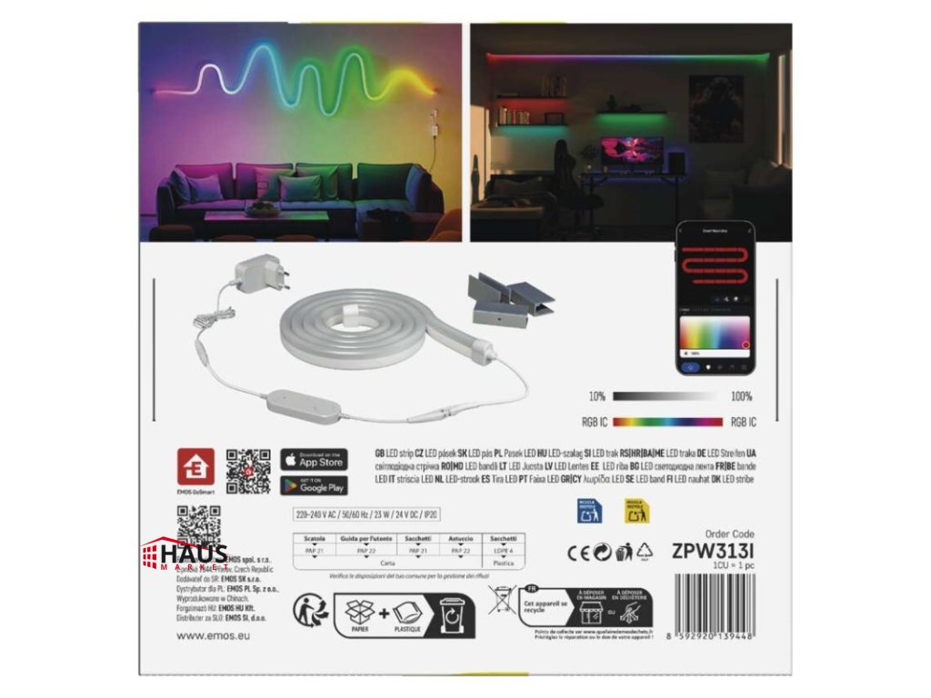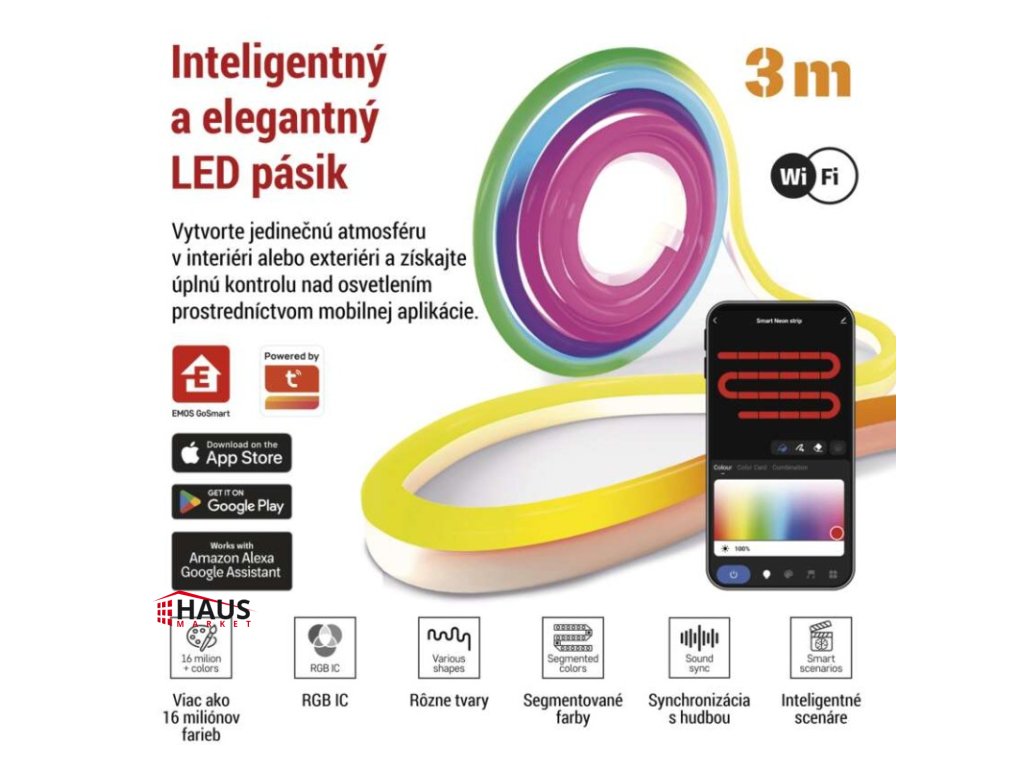 dĺžka: 3 000 mm|dĺžka prívodu: 1,6 m|energetická trieda dodávaného svetelného zdroja: –|farba svetla: RGBIC|farba tela: biela|jazyky aplikácie: EN, CZ, SK, PL, DE, HU, SI, FR, + 60 ďalších jazykov|kategória: –|kompatibilita: EMOS GoSmart, Tuya, Lidl, Smartlife|krytie: IP20|materiál difúzora: silikón|materiál tela: silikón|maximálny počet segmentov: –|nastavenia farieb (RGB): áno|nastavenie teploty farieb: nie|notifikácie do mobilnej aplikácie: áno|ovládanie hlasovými asistentmi: áno (Amazon, Alexa, Google Assistant)|počet segmentov: –|počet spínacích cyklov: –|podporované OS: iOS, Android|predajný obal: 1 ks, krabička|prenosová frekvencia: 2,4 GHz (IEEE 802.11b/g/n)|príkon: 23 W|protokol: WIFI + BLE|rada: GoSmart|RGB digital: áno|šírka: 18 mm|stmievanie: áno|svetelná účinnosť: –|svetelný tok: –|svetelný zdroj je súčasťou balenia: –|technológia: LED|teplota chromatičnosti: –|tvar: –|vstupné napätie: 220–240 V~/50 Hz|výška: –|záručná doba: 2 roky|životnosť: 20 000 hodínDodatočné parametre