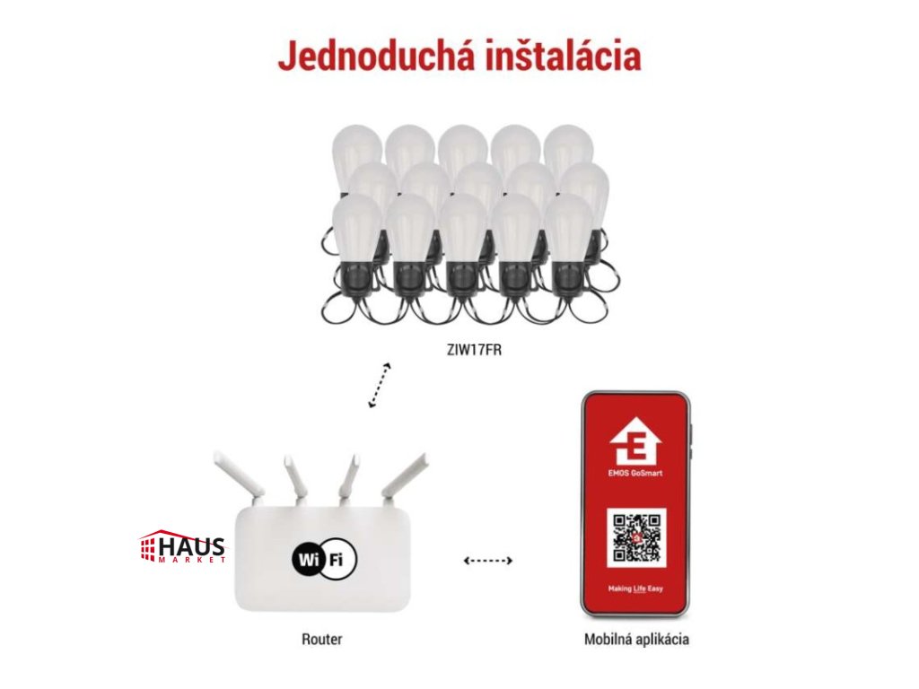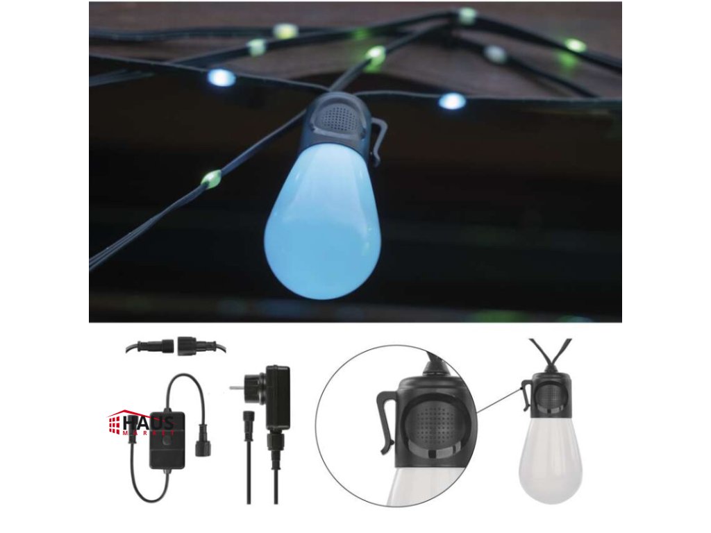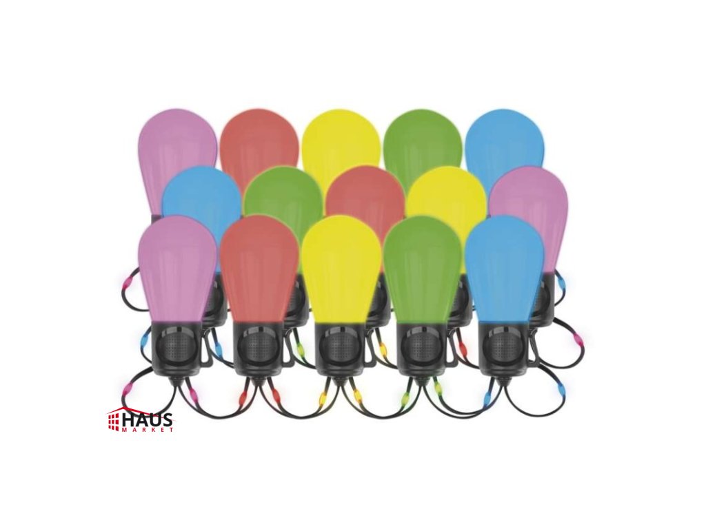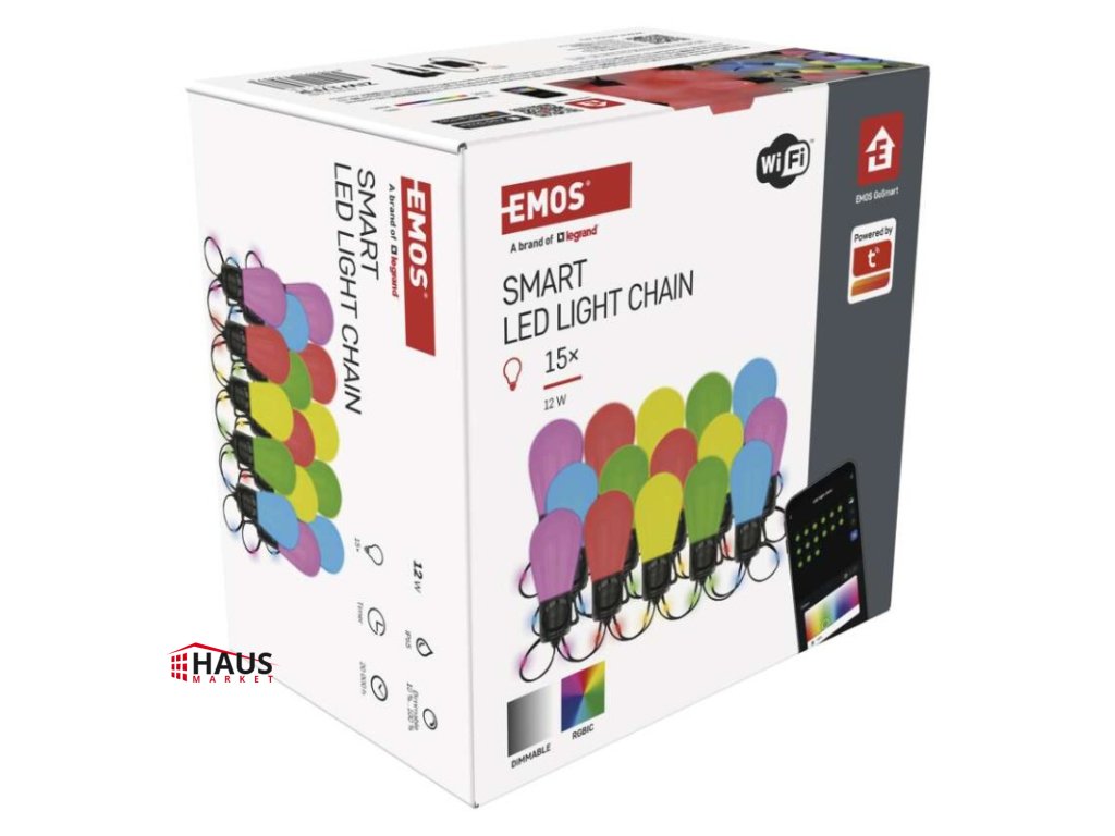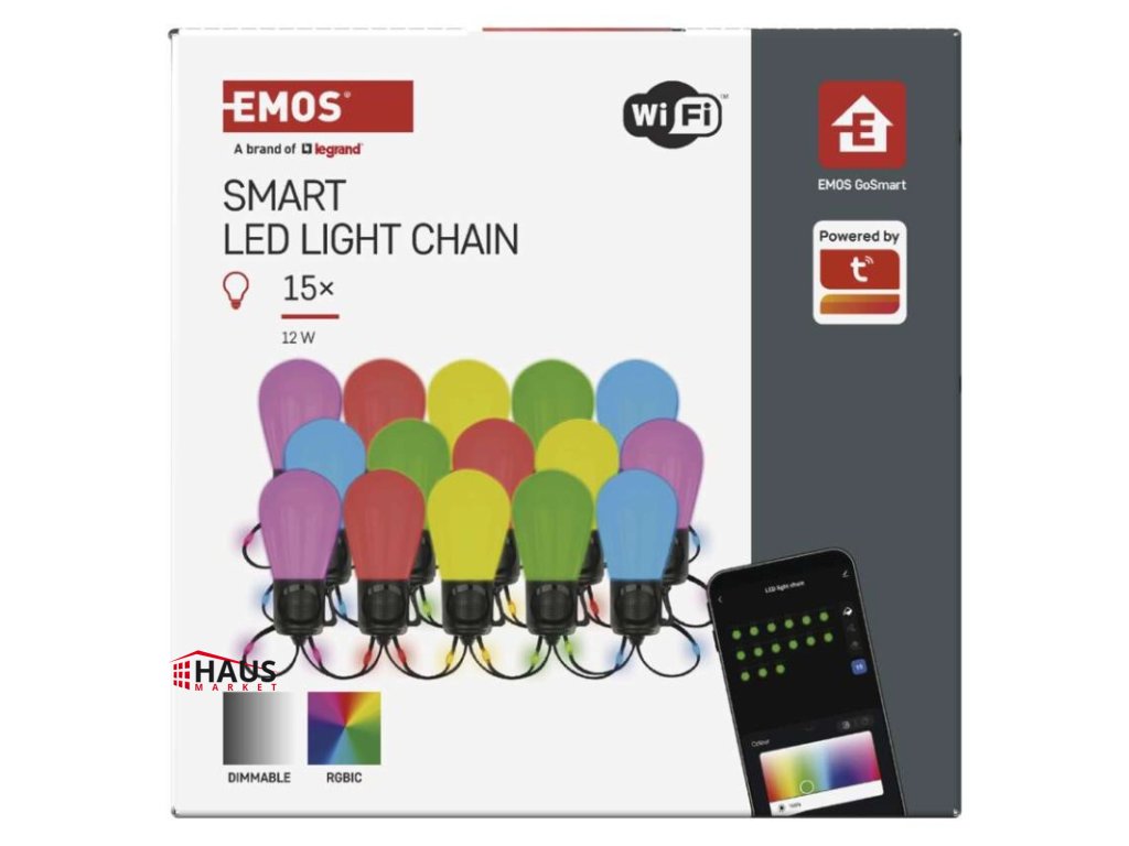 GoSmart LED svetelný reťazec – 15× párty žiarovky, 15 m, vonkajšie aj vnútorné, RGBIC WiFi