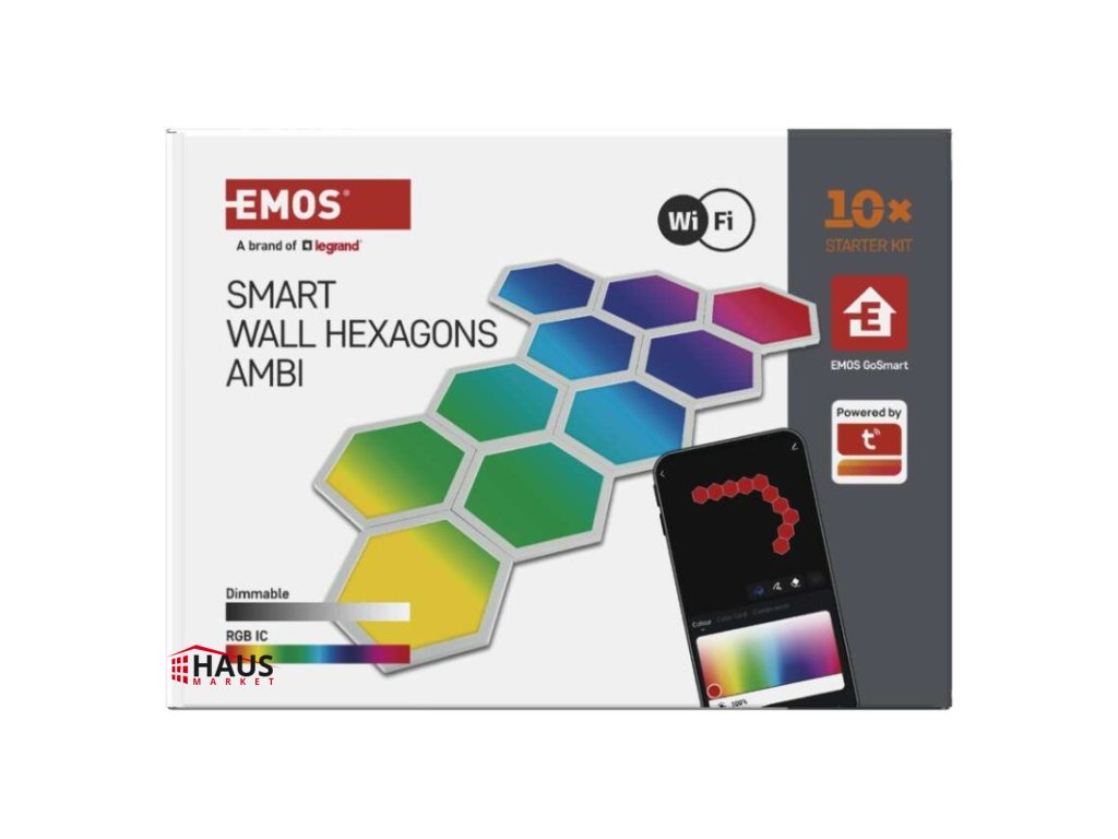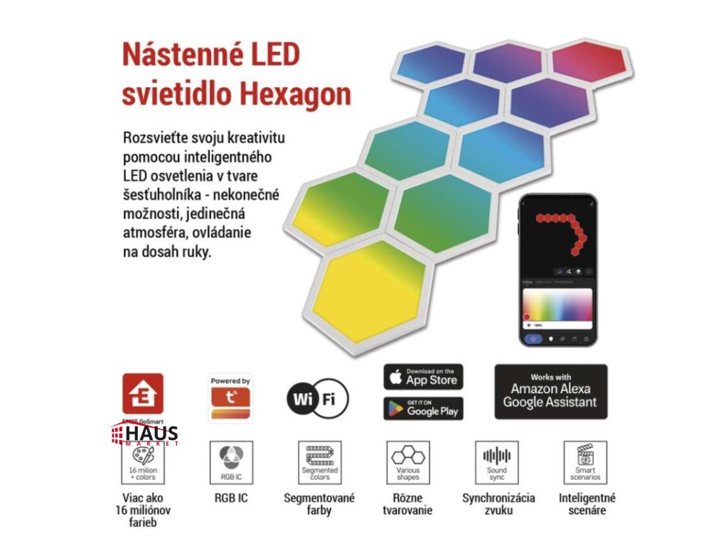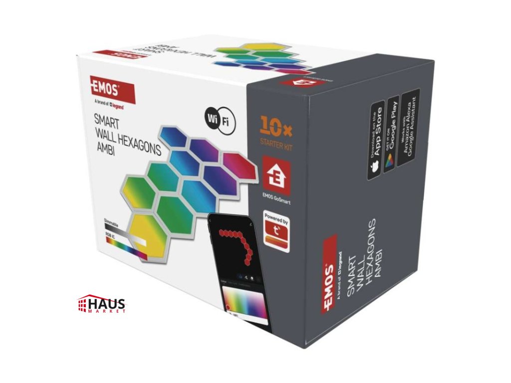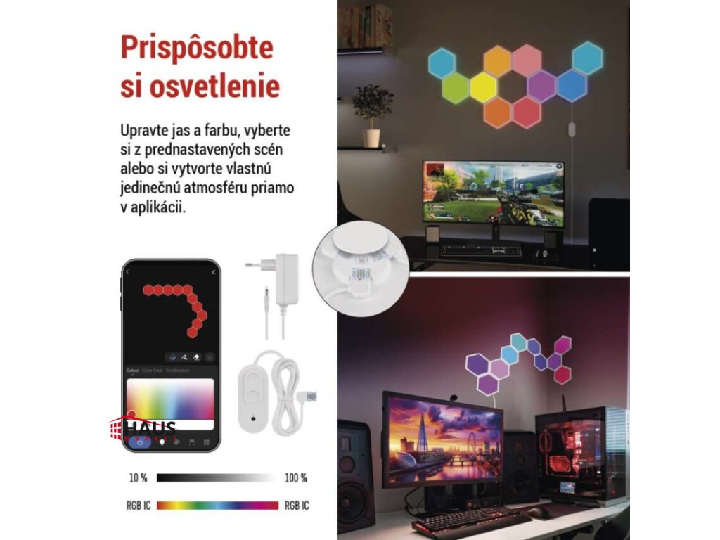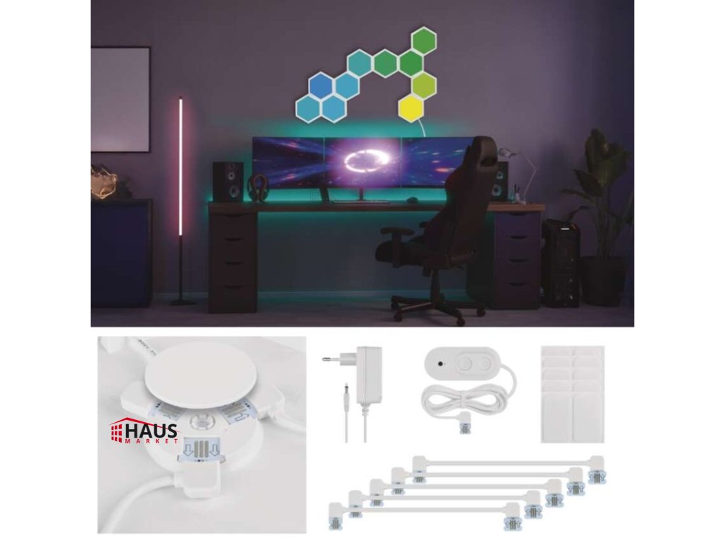 GoSmart LED svietidlo Hexagon, štartovací sada, 10 dielov, 19 W, RGBIC stmievateľné, WiFi
