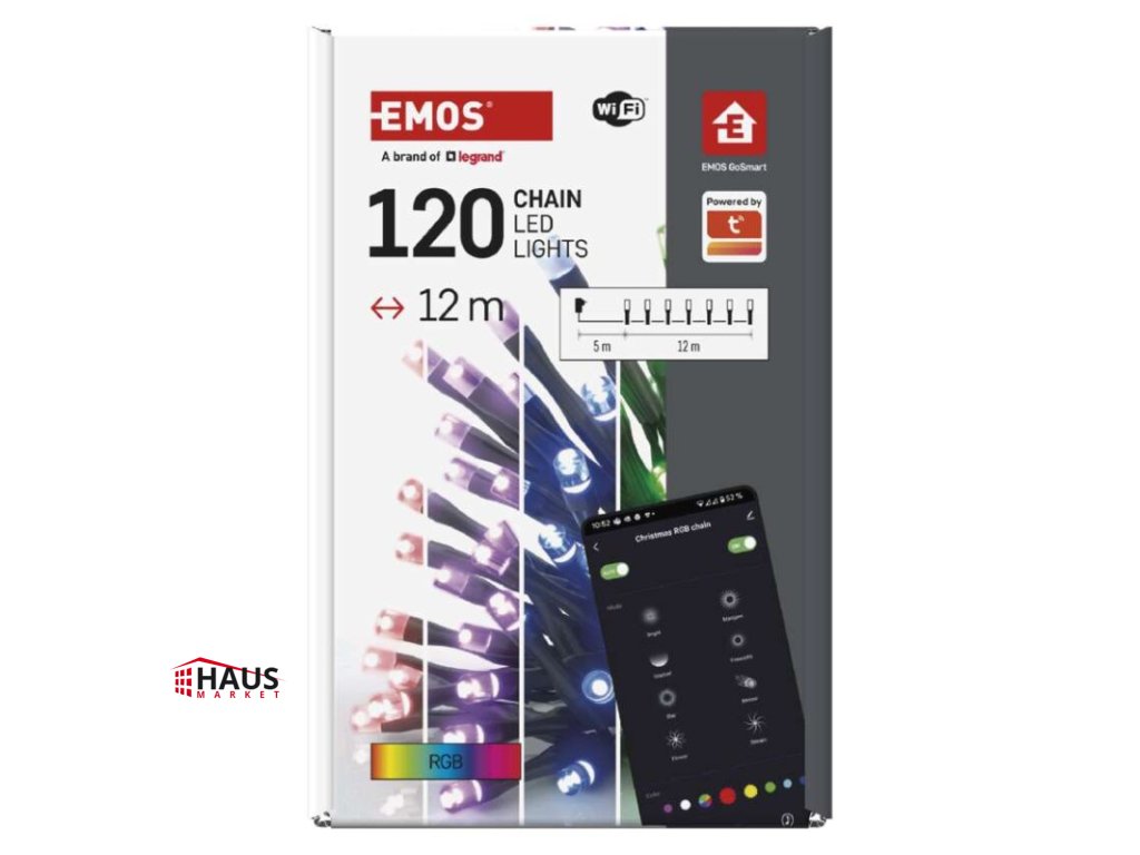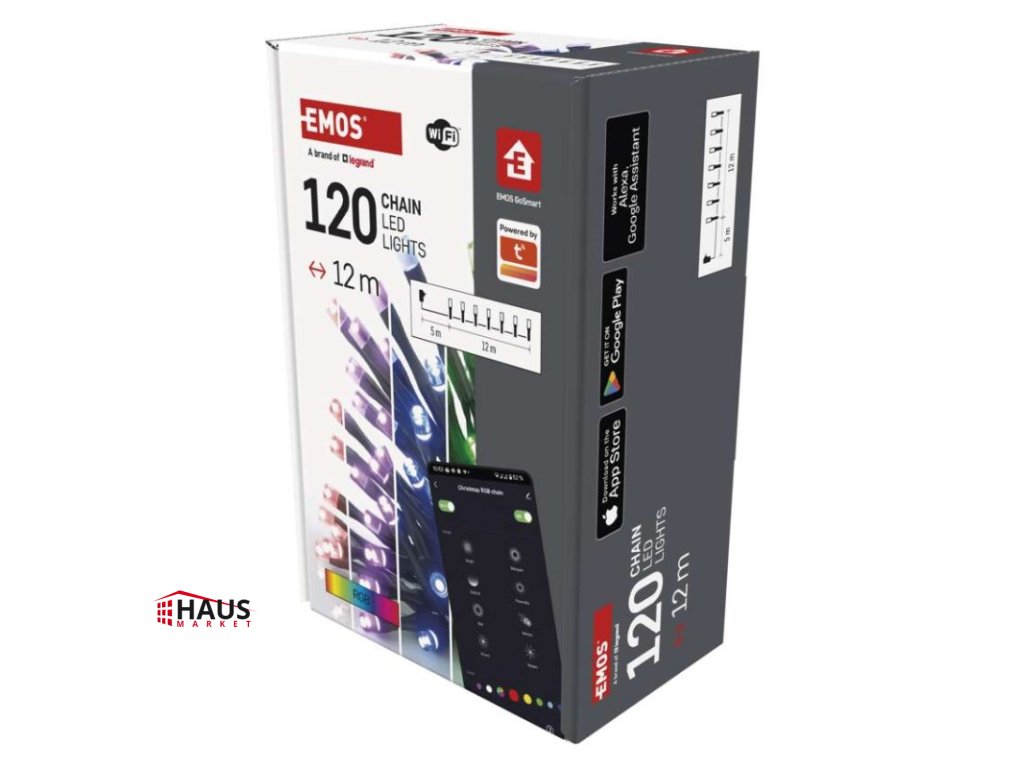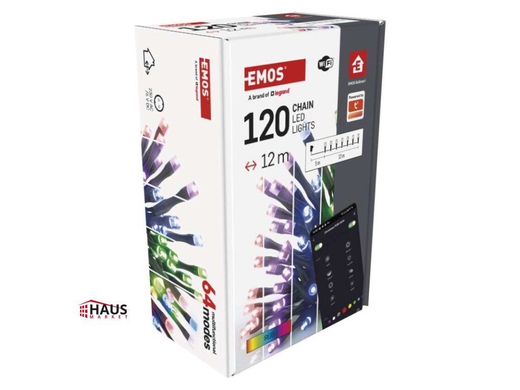časovač: áno|ďalšie funkcie: –|diaľkový ovládač: nie|dĺžka prívodu: 5 m|farba drôtu: čierna|farba svetla: RGB|funkcia: 64 módov (multifunkcie)|jazyky aplikácie: EN, CZ, SK, PL, DE, HU, SI, FR, + 60 ďalších jazykov|kompatibilita: EMOS GoSmart, TUYA, LIDL, Smartlife, otvorený systém|krytie: IP44|LED medzera: neuvádza sa|materiál: PVC|možnosť prepojenia: nie|notifikácie do mobilnej aplikácie: áno|ovládanie hlasovými asistentmi: áno|počet LED: 120|podporované operačné systémy: Android, iOS|použitie: vonkajšie aj vnútorné|predajný obal: 1 ks, krabica|prenosová frekvencia: 2,4 GHz (IEEE802.11b/g/n)|pre výšku stromu: neuvádza sa|príkon: 8,4 W|produkt: reťaz|protokol: Wi-Fi|rozmer: 12 m|tvar: neuvádza sa|typ napájania: sieťový adaptér|veľkosť LED: neuvádza sa|vstupné napätie: 230 V AC|výstupné napätie: 6 V DC|záručná doba: 2 roky|životnosť: 10 000 hodínDodatočné parametre