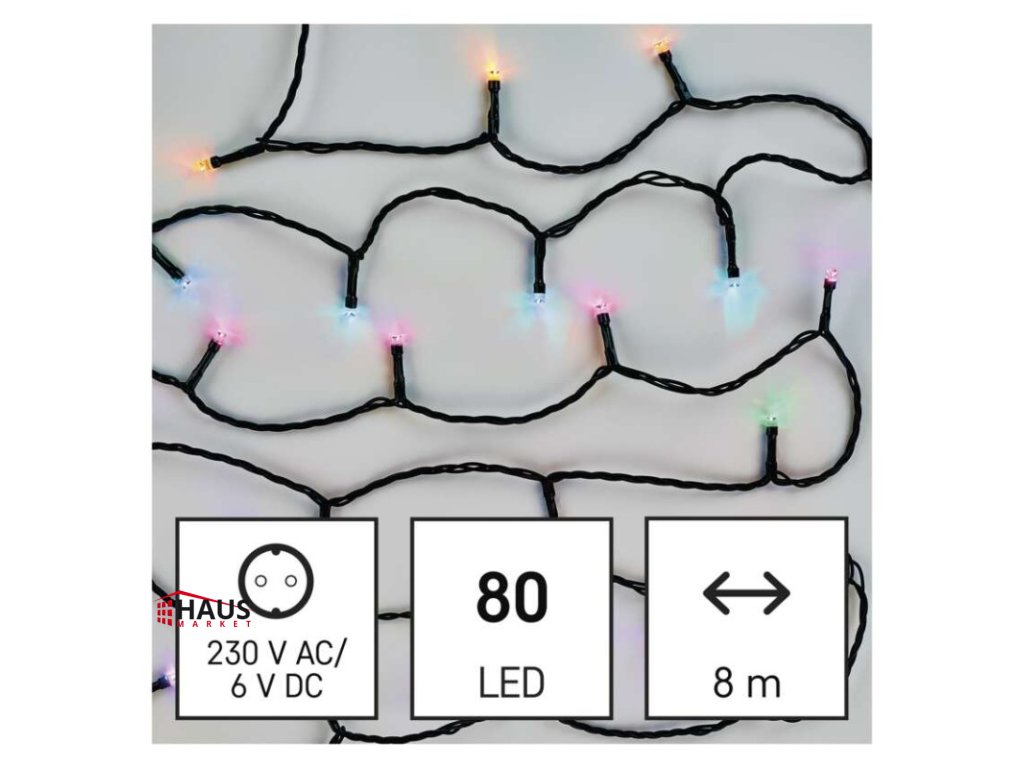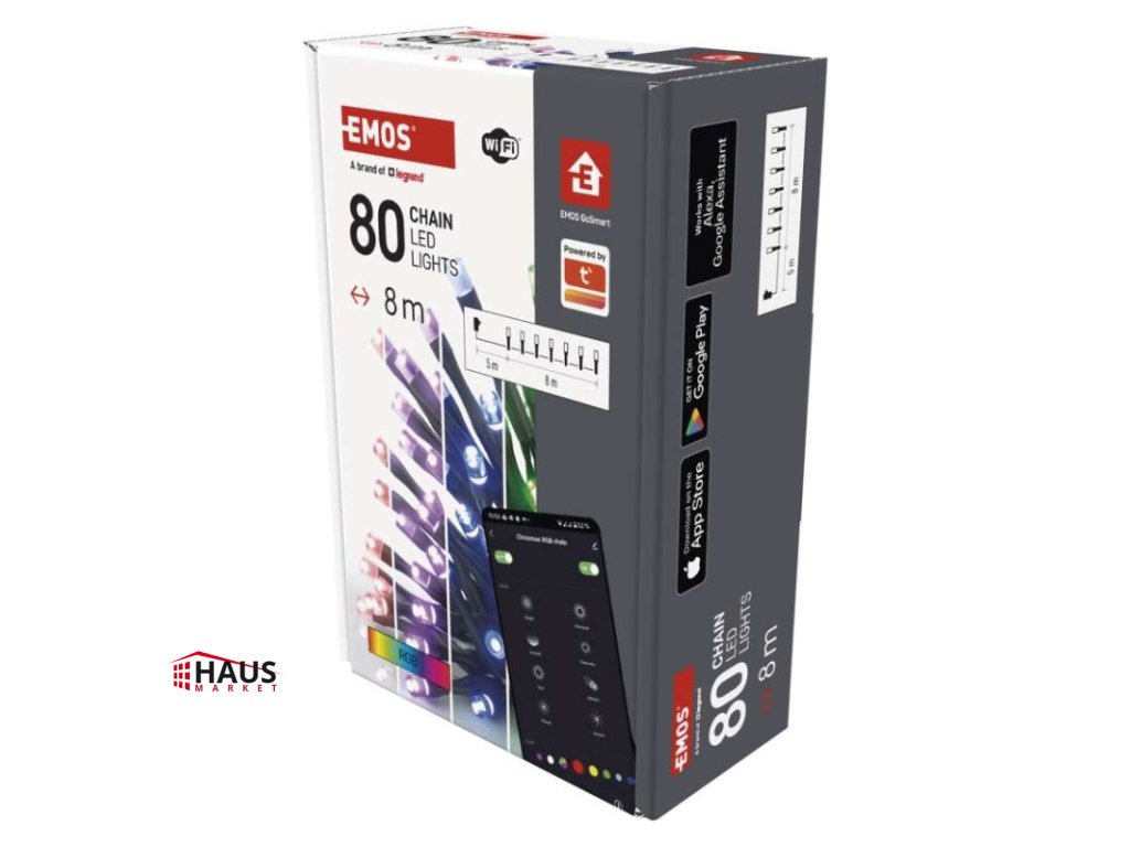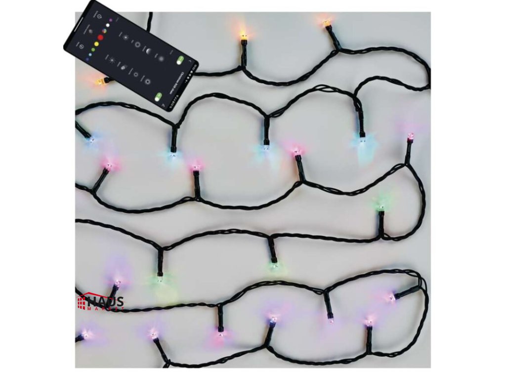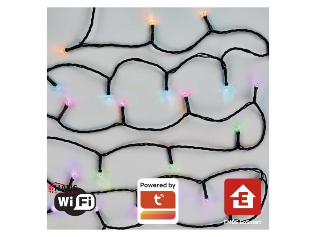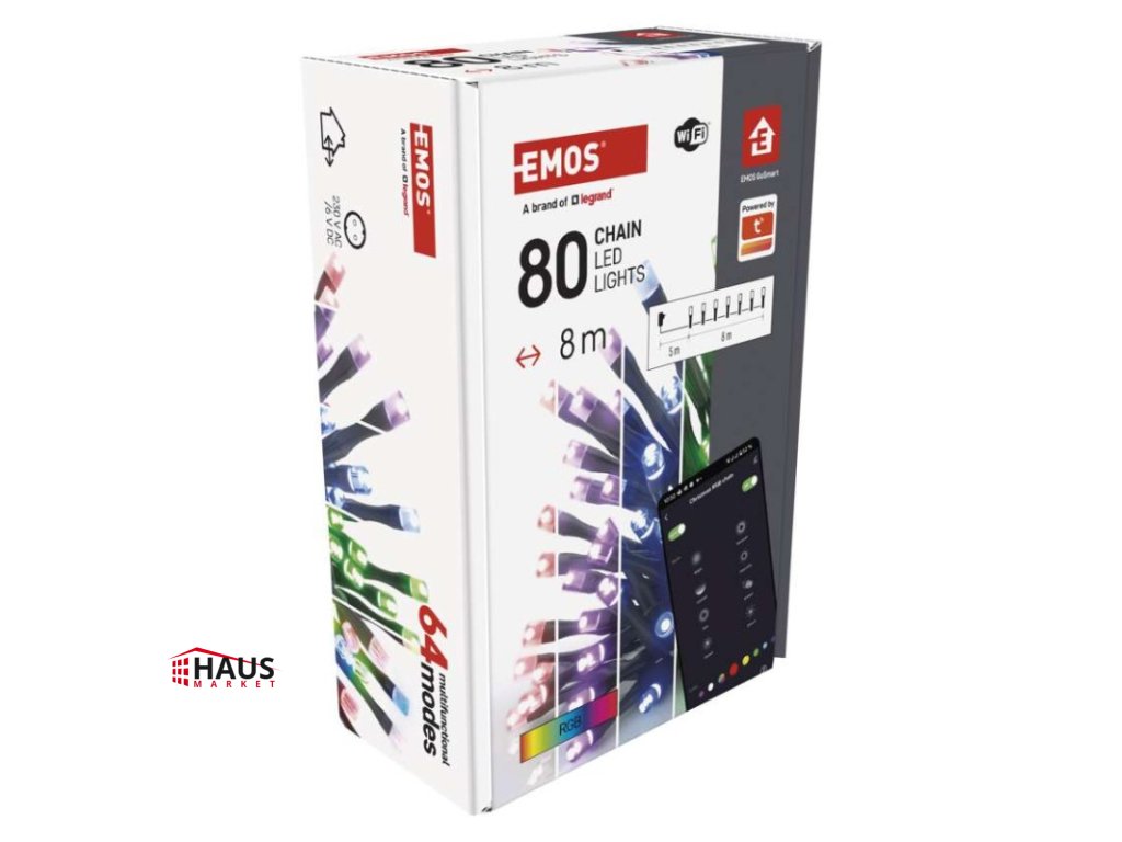 časovač: áno|ďalšie funkcie: –|diaľkový ovládač: nie|dĺžka prívodu: 5 m|farba drôtu: čierna|farba svetla: RGB|funkcia: 64 módov (multifunkcie)|jazyky aplikácie: EN, CZ, SK, PL, DE, HU, SI, FR, + 60 ďalších jazykov|kompatibilita: EMOS GoSmart, TUYA, LIDL, Smartlife, otvorený systém|krytie: IP44|LED medzera: neuvádza sa|materiál: PVC|možnosť prepojenia: nie|notifikácie do mobilnej aplikácie: áno|ovládanie hlasovými asistentmi: áno|počet LED: 80|podporované operačné systémy: Android, iOS|použitie: vonkajšie aj vnútorné|predajný obal: 1 ks, krabica|prenosová frekvencia: 2,4 GHz (IEEE802.11b/g/n)|pre výšku stromu: neuvádza sa|príkon: 8,4 W|produkt: reťaz|protokol: Wi-Fi|rozmer: 8 m|tvar: neuvádza sa|typ napájania: sieťový adaptér|veľkosť LED: neuvádza sa|vstupné napätie: 230 V AC|výstupné napätie: 6 V DC|záručná doba: 2 roky|životnosť: 10 000 hodínDodatočné parametre