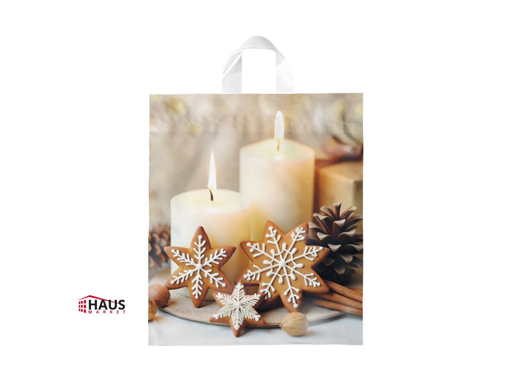 Nalaďte sa na pokojné Vianoce už pri nákupe! Elegantná igelitová nákupná taška s vianočným motívom sviečok, medovníkov a prírodných dekorácií navodí hrejivú, sviatočnú atmosféru. Jemný a decentný dizajn v prírodných tónoch pôsobí vkusne a pokojne – ideálna na adventné nákupy. Vďaka rozmerom a pevnému materiálu s praktickými uchami je taška nielen krásna, ale aj odolná a priestranná. Hrúbka igelitu: 0,050 mm Rozmer: 400 x 460 x 80 mm Uvedená cena je za 1 ks.Dodatočné parametre