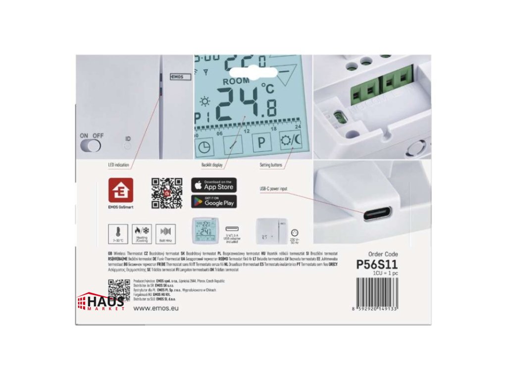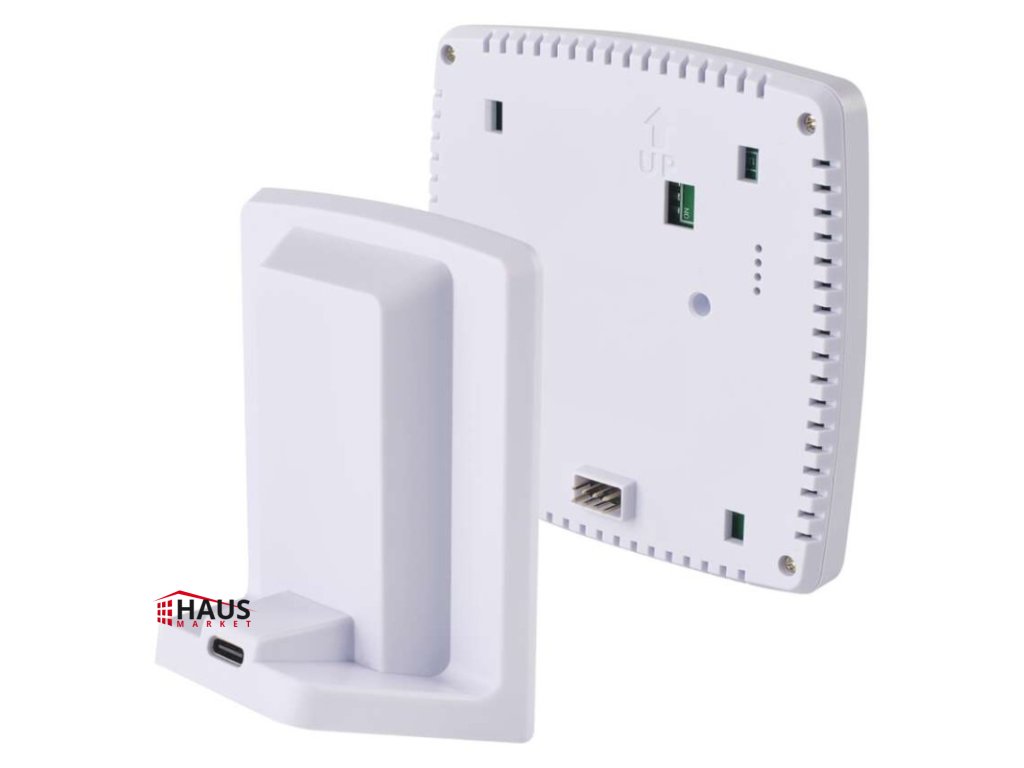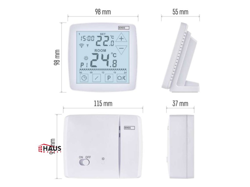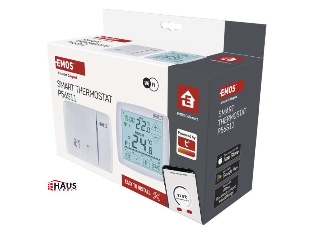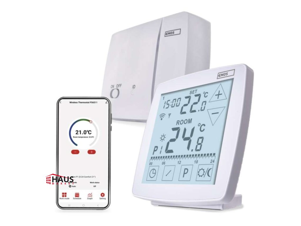 dĺžka kapilárneho čidla: –|dosah vo voľnom priestore: 100 m|druh regulácie: vykurovací a chladiaci systém|farba: biela|funkcia ON/OFF: áno|funkcia prázdniny: áno|funkcia Set-back: nie|jazyky aplikácie: EN, CZ, SK, PL, DE, HU, SI, FR, + 60 ďalších jazykov|kalibrácia teploty: áno|kompatibilita: EMOS GoSmart, TUYA, LIDL, Smartlife, otvorený systém|meranie teploty: 0 °C až 40 °C, rozlíšenie 0,1 °C|možnosť prepojenia s ďalšími detektormi: nie|napájanie: –|napájanie brány: –|napájanie prijímača: 230 V AC|napájanie vysielača: 5 V USB adaptér (súčasťou balenia)|nastavenie teploty: 7 ° C až 30 ° C, po 0,2 ° C|nastaviteľný rozptyl teploty: #|notifikácie do mobilnej aplikácie: áno|ochrana proti zamrznutiu: áno|ovládanie hlasovými asistentmi: áno (Amazon Alexa, Google Assistant)|počet programov: 6 + 3 užívateľsky nastaviteľné|podlahový senzor: –|podporované OS: Android, iOS|podsvietený displej: áno|pracovná frekvencia: 868 MHz|predajný obal: 1 ks, krabička|prenosová frekvencia: 2,4 GHz WIFI (IEEE802.11b/g/n)|protokol: Wi-Fi|rozmer: –|rozmer brány: –|rozmer prijímača: 115 × 37 × 91 mm|rozmer vysielača: 98 × 55 × 98 mm|spínaná záťaž: 16 A odporovo, 5 A induktívne|spínanie: 230 V AC alebo beznapäťové|súčasť balenia: –|typ nastavenia teploty: komfortná a úsporná teplota|typ ovládania: programovateľný elektronický izbový termostat, možnosť ovládania cez mobil (iOS, Android)|typ termostatu: bezdrôtový s OpenTherm komunikáciouDodatočné parametre