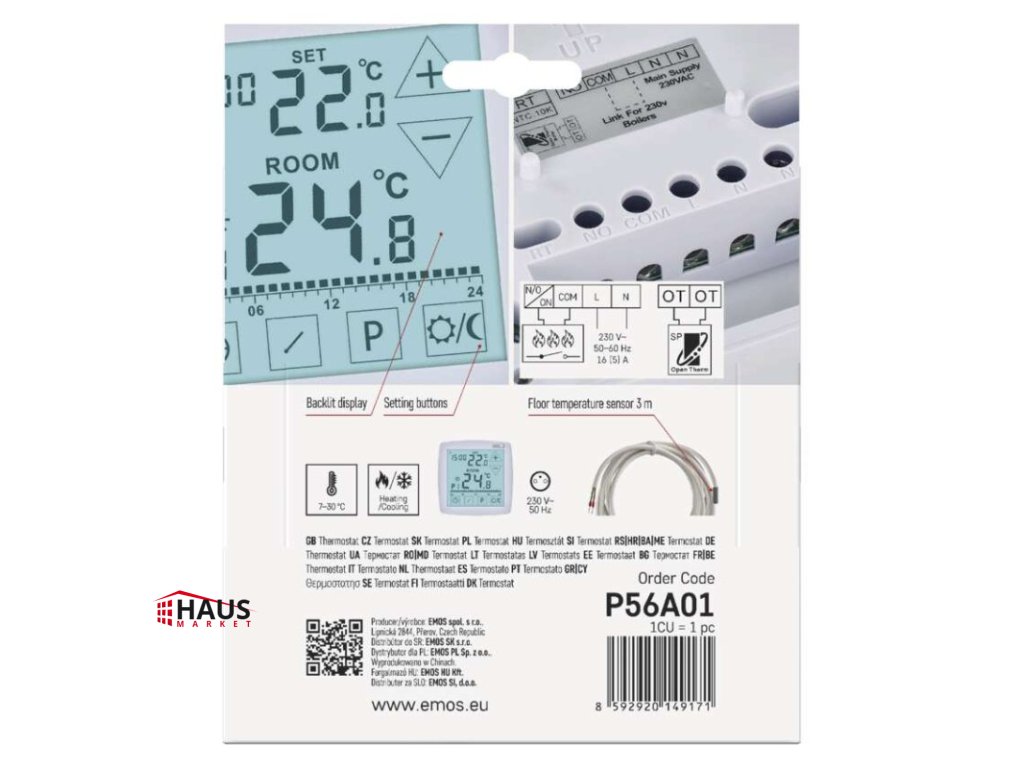Izbový programovateľný drôtový OpenTherm termostat P56A01