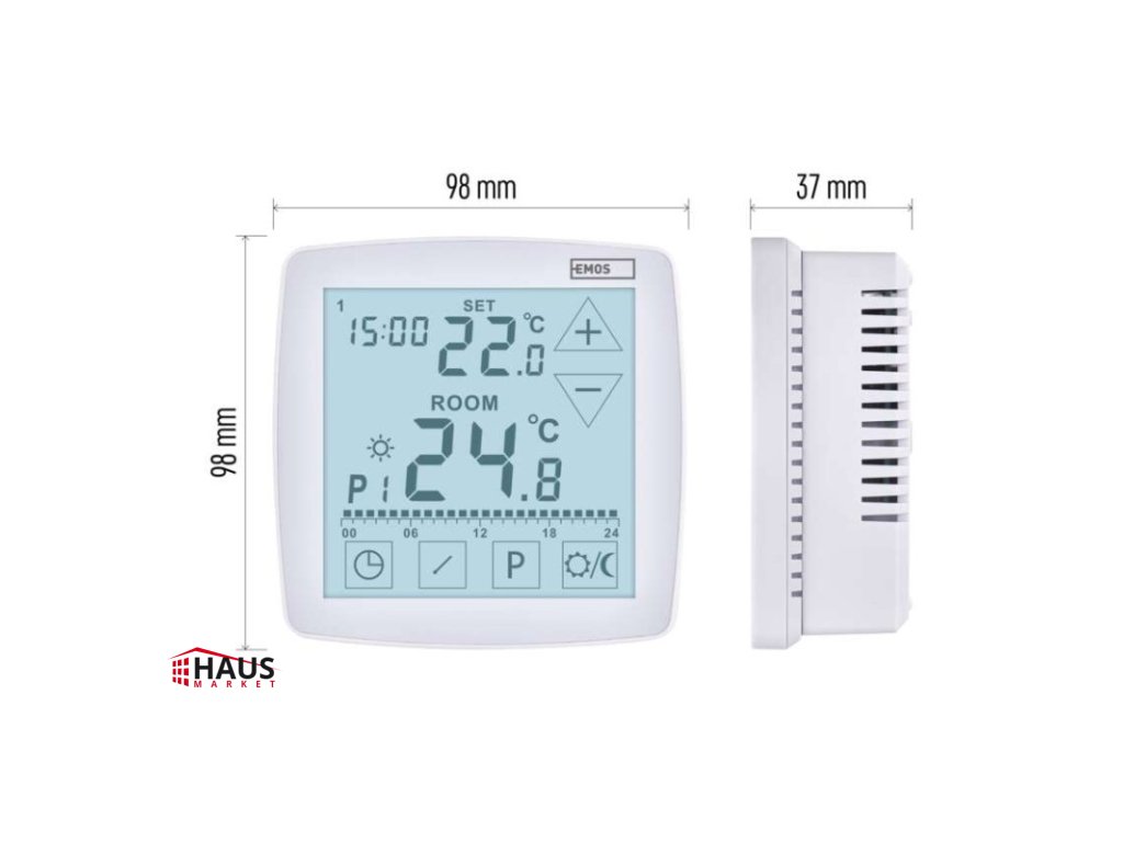 | typ ovládania: | programovateľný elektronický izbový termostat |