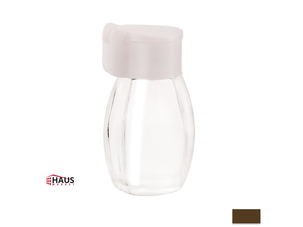 Soľnička s viečkom na závit. Materiál: sklo, plast. Rôzne farby plastových viečok. Rozmery: objem 0,05 l, pr. 4 cm, v. 7,5 cm.Dodatočné parametre