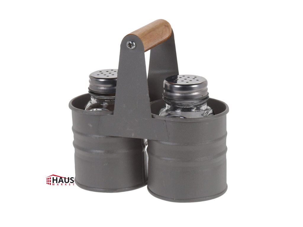 Dochucovacia súprava - soľnička a korenička v stojane. Budete ju mať pri stolovaní vždy po ruke. Dizajnový prvok pre stolovanie doma aj na terase pri grilovaní. Materiál: sklo, nerez, kov, drevo. Rozmery: 13x6,5x13 cm, 4x4x9 cm.Dodatočné parametre
