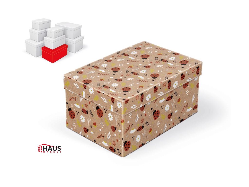 Celoročná darčeková krabica s rozmermi 24 x 16 x 12 cm NÁHODNÝ MIX Táto darčeková krabička v prírodnom štýle s hravým motívom lienok a kvetov je krásnym spojením roztomilosti a praktickosti. Stačí vložiť jednu krabičku do košíka – celá sada sa pridá automaticky. Každá z nich sa líši veľkosťou aj motívom, ale dohromady tvorí starostlivo zladený komplet. Materiál: 1,5 mm kartón, potiahnutý papierom s potlačou Set obsahuje tieto krabice: 5371265 Škatuľa darčeková B-C011-A 16x10x8 cm 5371266 Škatuľa darčeková B-C011-B 18x11x9 cm 5371267 Škatuľa darčeková B-C011-C 20x12x10 cm 5371268 Krabica darčeková B-C011-D 22x14x11 cm 5371269 Krabica darčeková B-C011-E 24x16x12 cm 5371270 Škatuľa darčeková B-C011-F 26x17x13 cm 5371271 Krabica darčeková B-C011-G 28x18x14 cm 5371272 Krabica darčeková B-C011-H 30x19x15 cm Uvedená cena je za 1 ks.Dodatočné parametre