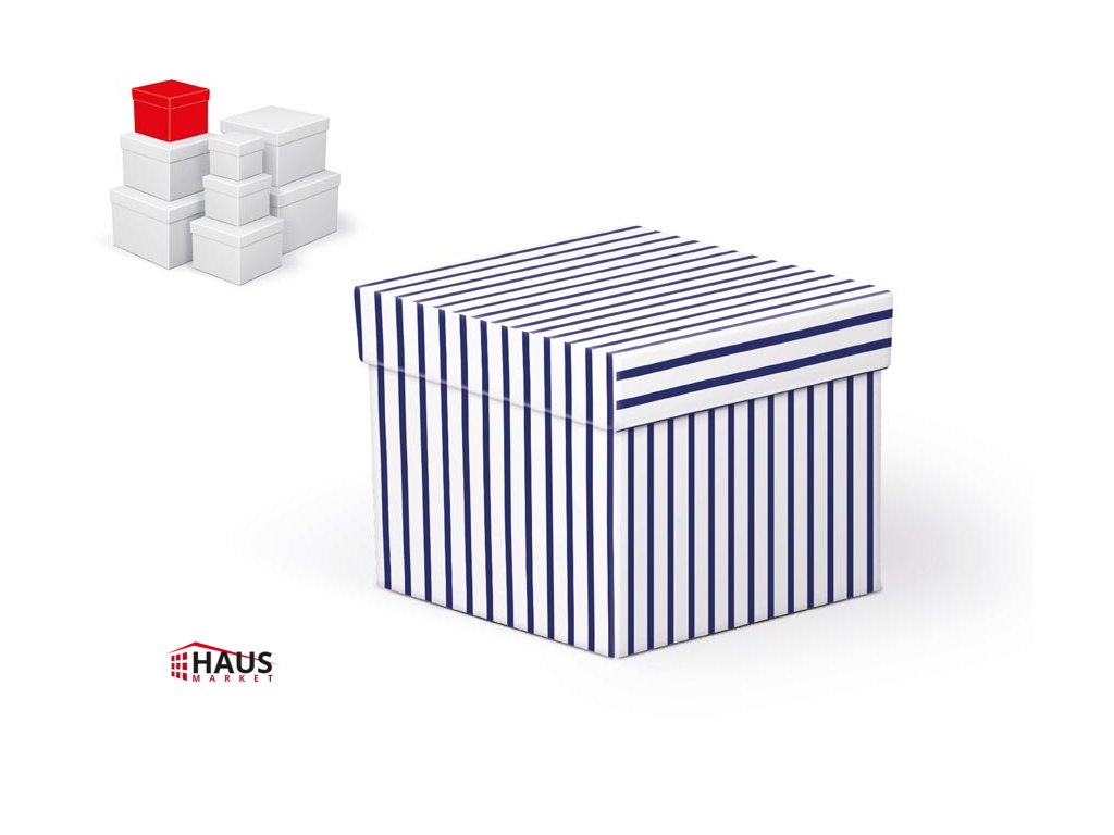 Celoročná darčeková krabica s rozmermi 12 × 12 × 10 cm NÁHODNÝ MIX Elegantná darčeková krabička s modro-bielymi pruhmi v námorníckom štýle dodá vášmu darčeku šmrnc a originalitu. Vďaka svojmu čistému a vkusnému dizajnu je ideálna na každú príležitosť – či už darujete drobnosť k narodeninám, alebo malú pozornosť „len tak“. Táto krabička je súčasťou sady 8 darčekových krabičiek, z ktorých každá má iný motív a farbu. Všetky sú starostlivo zladené do originálnej a pestrej kolekcie. Pri vložení do košíka sa automaticky pridá celý set, takže získate kompletnú sadu plnú štýlu a nápadu. Materiál: kartón 1,5 mm, potiahnutý papierom s potlačou Set obsahuje tieto krabice: 5371273 – Krabica darčeková C-C009-A 8×8×8 cm 5371274 – Krabica darčeková C-C009-B 10×10×9 cm 5371275 – Krabica darčeková C-C009-C 12×12×10 cm 5371276 – Krabica darčeková C-C009-D14×14×11 cm 5371277 – Krabica darčeková C-C009-E16×16×12 cm 5371278 – Krabica darčeková C-C009-F 18×18×13 cm 5371279 – Krabica darčeková C-C009-G 20×20×14 cm 5371280 – Krabica darčeková C-C009-H 22×22×15 cm Uvedená cena je za 1 ks.Dodatočné parametre