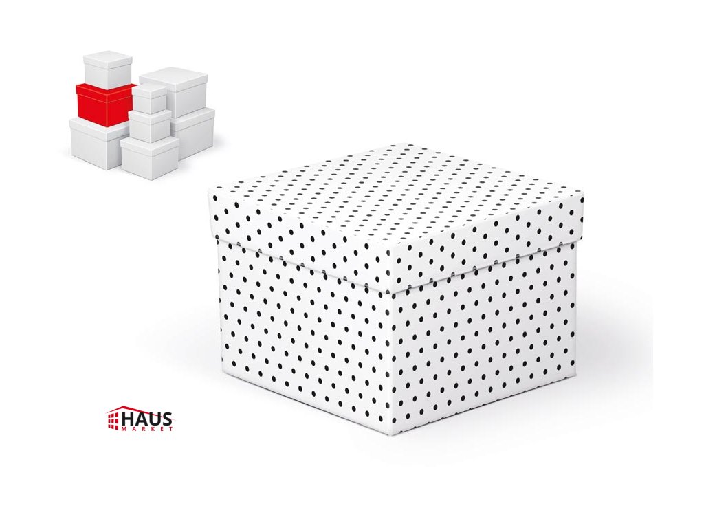 Celoročná darčeková krabica s rozmermi 16 × 16 × 12 cm NÁHODNÝ MIX Čiernobiela krabička s drobnými bodkami je stelesnením nadčasovej elegancie a minimalizmu. Či už ju použijete na malý darček, šperk alebo tajný odkaz, vždy pôsobí štýlovo a vkusne. Hodí sa na každú príležitosť – od narodenín až po svadobný dar. Je súčasťou sady 8 darčekových krabičiek, ktoré sa líšia nielen farbami, ale aj vzormi. Každá krabička v sete má svoj originálny vzhľad a spolu tvoria hravú a pestrú kolekciu. Pri vložení do košíka sa automaticky pridá celý set. Materiál: 1,5 mm kartón potiahnutý papierom s potlačou Set obsahuje tieto krabice: 5371273 – Krabica darčeková C-C009-A 8×8×8 cm 5371274 – Krabica darčeková C-C009-B 10×10×9 cm 5371275 – Krabica darčeková C-C009-C 12×12×10 cm 5371276 – Krabica darčeková C-C009-D14×14×11 cm 5371277 – Krabica darčeková C-C009-E16×16×12 cm 5371278 – Krabica darčeková C-C009-F 18×18×13 cm 5371279 – Krabica darčeková C-C009-G 20×20×14 cm 5371280 – Krabica darčeková C-C009-H 22×22×15 cm Uvedená cena je za 1 ks.Dodatočné parametre