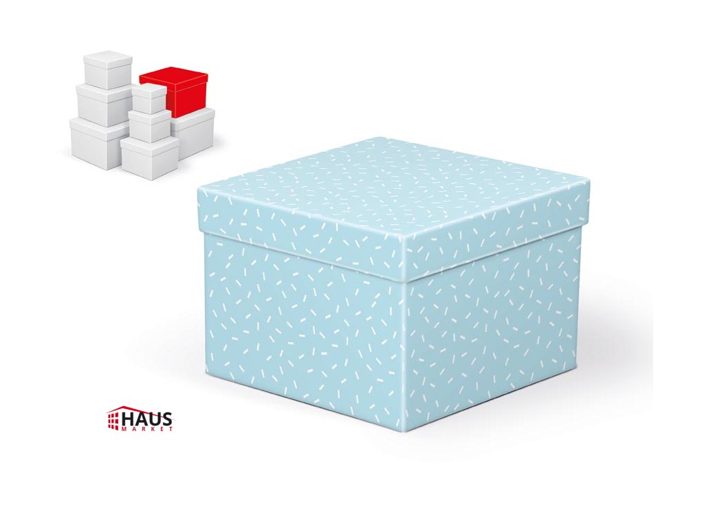 Celoročná darčeková krabica s rozmermi 18 × 18 × 13 cm NÁHODNÝ MIX Svetlomodrá darčeková krabička s jemným vzorom bielych čiar pôsobí moderne, hravo a zároveň decentne. Perfektná voľba na drobný darček, ktorý chcete zabaliť štýlovo a s ľahkosťou. Táto krabička je súčasťou sady 8 darčekových krabičiek, ktoré sa líšia farbou aj vzorom. Každá má svoj originálny vzhľad a spolu tvoria hravú a pestrú kolekciu. Pri vložení do košíka sa automaticky pridá celý set. Materiál: 1,5 mm kartón potiahnutý papierom s potlačou Set obsahuje tieto krabice: 5371273 – Krabica darčeková C-C009-A 8×8×8 cm 5371274 – Krabica darčeková C-C009-B 10×10×9 cm 5371275 – Krabica darčeková C-C009-C 12×12×10 cm 5371276 – Krabica darčeková C-C009-D14×14×11 cm 5371277 – Krabica darčeková C-C009-E16×16×12 cm 5371278 – Krabica darčeková C-C009-F 18×18×13 cm 5371279 – Krabica darčeková C-C009-G 20×20×14 cm 5371280 – Krabica darčeková C-C009-H 22×22×15 cm Uvedená cena je za 1 ks.Dodatočné parametre