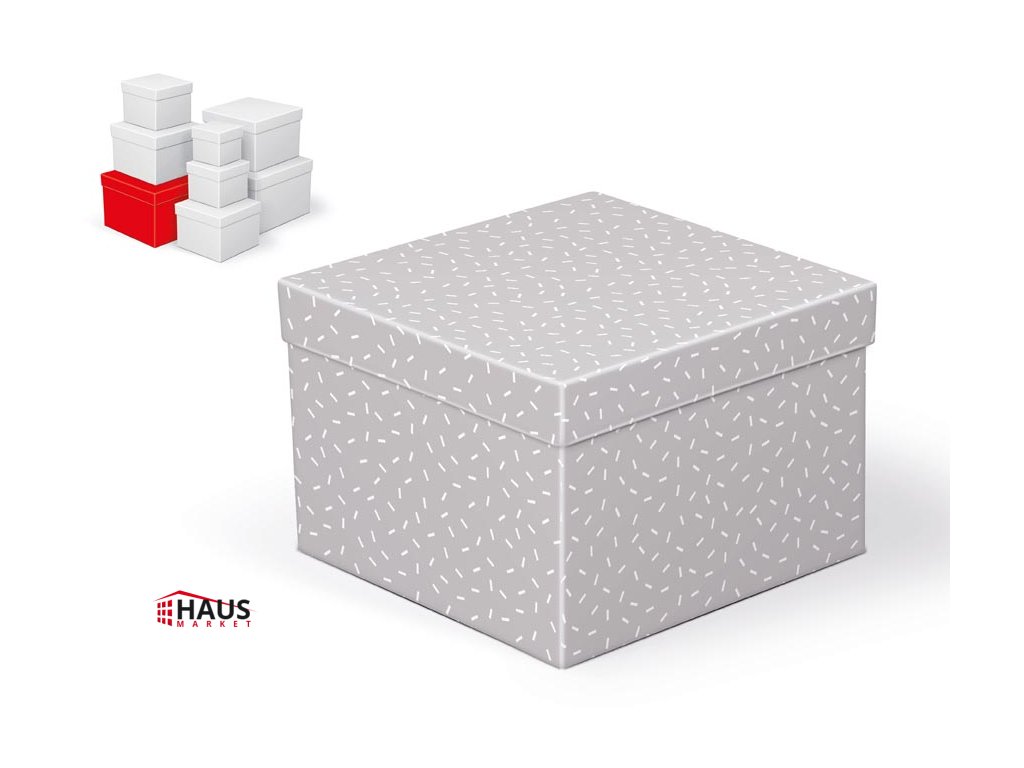 Celoročná darčeková krabica s rozmermi 20 × 20 × 14 cm NÁHODNÝ MIX Štýlová sivá darčeková krabička s jemným vzorom bielych čiar pôsobí moderne a nadčasovo. Skvele sa hodí na elegantné darčeky, decentné balenie alebo jednoducho vtedy, keď chcete zaujať jednoduchosťou s nápadom. Je jednou z ôsmich originálnych krabičiek, ktoré sa líšia farbou aj motívom. Spolu vytvárajú pestrý a hravý celok, ktorý poteší pri každej príležitosti. Do košíka sa vkladá vždy kompletná sada. Materiál: 1,5 mm kartón potiahnutý papierom s potlačou Set obsahuje tieto krabice: 5371273 – Krabica darčeková C-C009-A 8×8×8 cm 5371274 – Krabica darčeková C-C009-B 10×10×9 cm 5371275 – Krabica darčeková C-C009-C 12×12×10 cm 5371276 – Krabica darčeková C-C009-D14×14×11 cm 5371277 – Krabica darčeková C-C009-E16×16×12 cm 5371278 – Krabica darčeková C-C009-F 18×18×13 cm 5371279 – Krabica darčeková C-C009-G 20×20×14 cm 5371280 – Krabica darčeková C-C009-H 22×22×15 cm Uvedená cena je za 1 ks.Dodatočné parametre