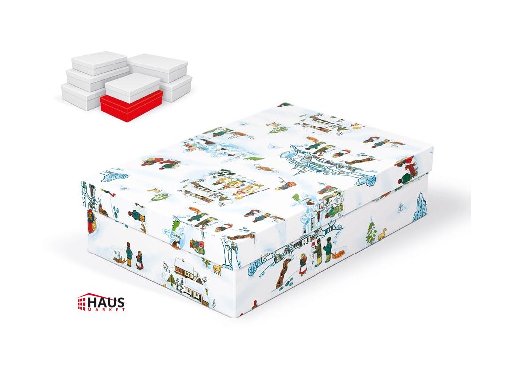 Vianočná darčeková krabička s motívmi Josefa Ladu s rozmermi 28 x 18 x 7 cm S touto krabičkou bude váš darček rýchlo a reprezentatívne zabalený. Dodávame len v súprave 7 darčekových krabíc, ktoré sú v rovnakom dizajne, ale v rôznych veľkostiach. Keď ich vložíte do košíka, ostatné škatule sa automaticky vložia, aby ste mali v košíku vždy celú, kompletnú sadu. Cena je uvedená za 1 ks. Materiál: 1,5 mm kartón potiahnutý luxusným papierom Súprava obsahuje tieto krabice: 5370755 Darčeková krabička A-V005-AL 24x16x6cm 5370756 Darčeková krabička A-V005-BL 26x17x6cm 5370757 Darčeková krabička A-V005-CL 28x18x7cm 5370758 Darčeková krabička A-V005-DL 30x19x7 cm 5370759 Darčeková krabička A-V005-EL 32x20x8 cm 5370760 Darčeková krabička A-V005-FL 34x22x8 cm 5370761 Darčeková krabička A-V005-GL 36x22x9 cmDodatočné parametre