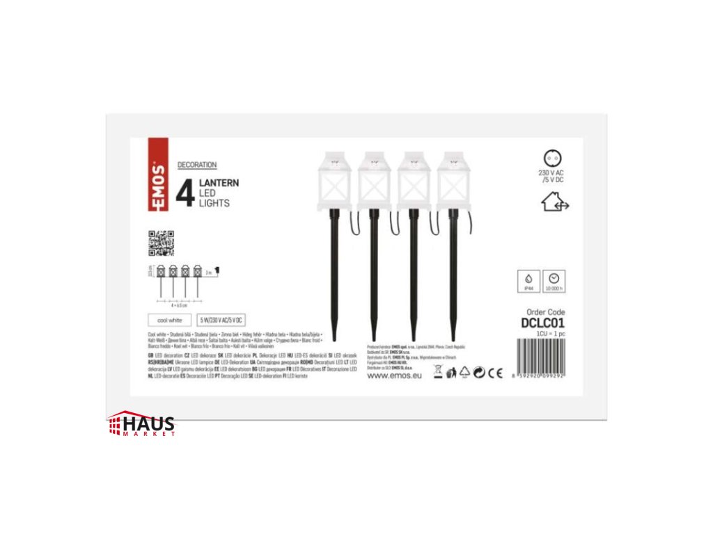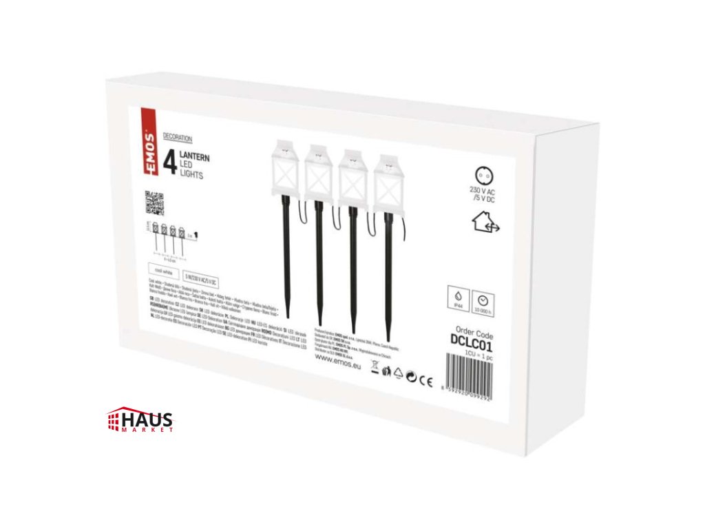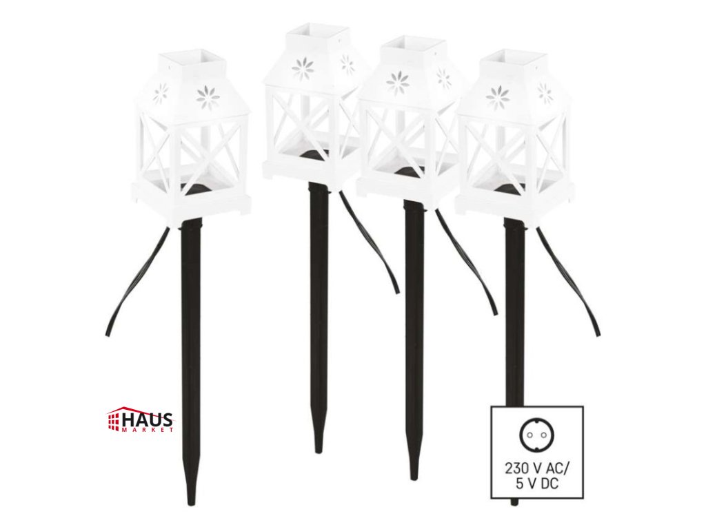 časovač: nie|diaľkový ovládač: nie|dĺžka prívodu: 3 m|farba drôtu: čierna|farba svetla: studená biela|krytie: IP44|materiál: plast|počet LED: 4× 1|použitie: vonkajšie aj vnútorné|predajný obal: 1 ks, krabica|príkon: 5 W|produkt: lucerna|rozmer: 4× 6,5 × 6,5 × 11,5 cm + 27 cm|typ napájania: sieťový adaptér|vstupné napätie: 230 V AC|výstupné napätie: 5 V DC micro USB (súčasťou balenia)|záručná doba: 2 roky|zdroj svetla: LED|životnosť: 10 000 hodínDodatočné parametre