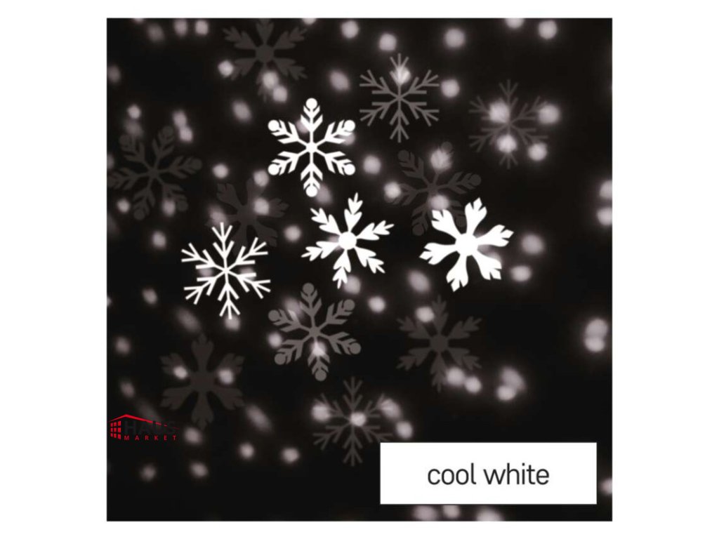 LED dekoratívny projektor – vločky, vonkajší aj vnútorný, studená biela