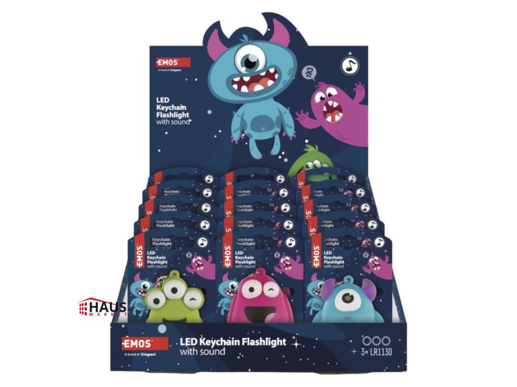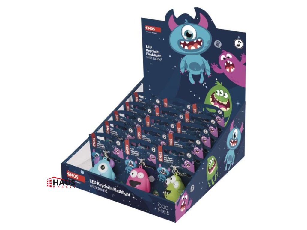 LED kľúčenka - príšerky so zvukom, 18 ks, display box