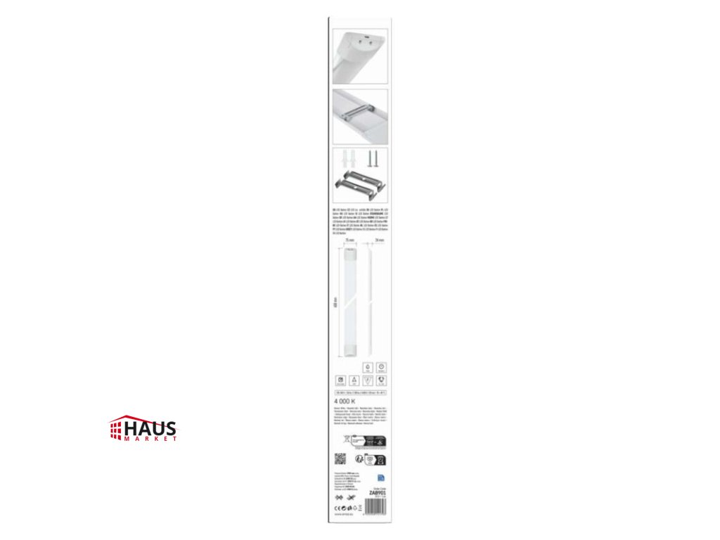 farba svetla: neutrálna biela|farba tela: biela|frekvencia: 50/60 Hz|index podania farieb (CRI): Ra >80|krytie: IP20|materiál: plast (PC)|materiál difúzora: plast (PC)|materiál spon: nemá spony|materiál tela: plast (PC)|možnosť stmievania: nie|náhrada za žiarovku: neuvádza sa|napätie: 220–240 V~|predajný obal: 1 ks, krabica|priebežná monáž: neuvádza sa|príkon: 20 W|prúd: 150 mA|rozmer: 600 × 75,5 × 24,5 mm|rozsah pracovnej teploty: -20 °C až +40 °C|stupeň ochrany proti mechanickým nárazom: IK06|svetelný tok: 2 200 lm|svetelný tok v núdzovom režime: neuvádza sa|teplota chromatičnosti: 4 000 K|trieda ochrany: II|typ difúzora: mliečny|typ montáže: prisadená|typ riadenia: neuvádza sa|uhol vyžarovania: 120°|výdrž batérie: neuvádza sa|záručná doba: 2 roky|záruka na batériu: neuvádza sa|zdroj svetla: LED|životnosť: 25 000 hodínDodatočné parametre