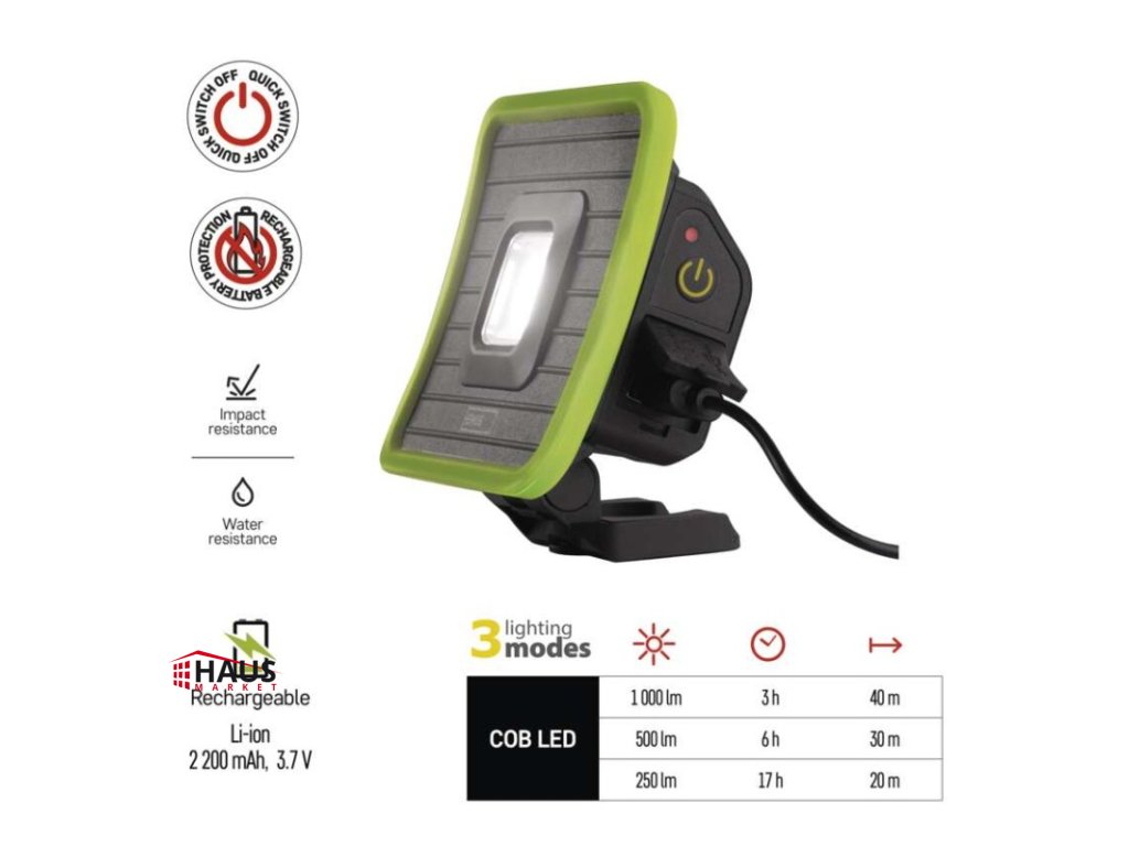 LED nabíjací pracovný reflektor P4539, 1000 lm
