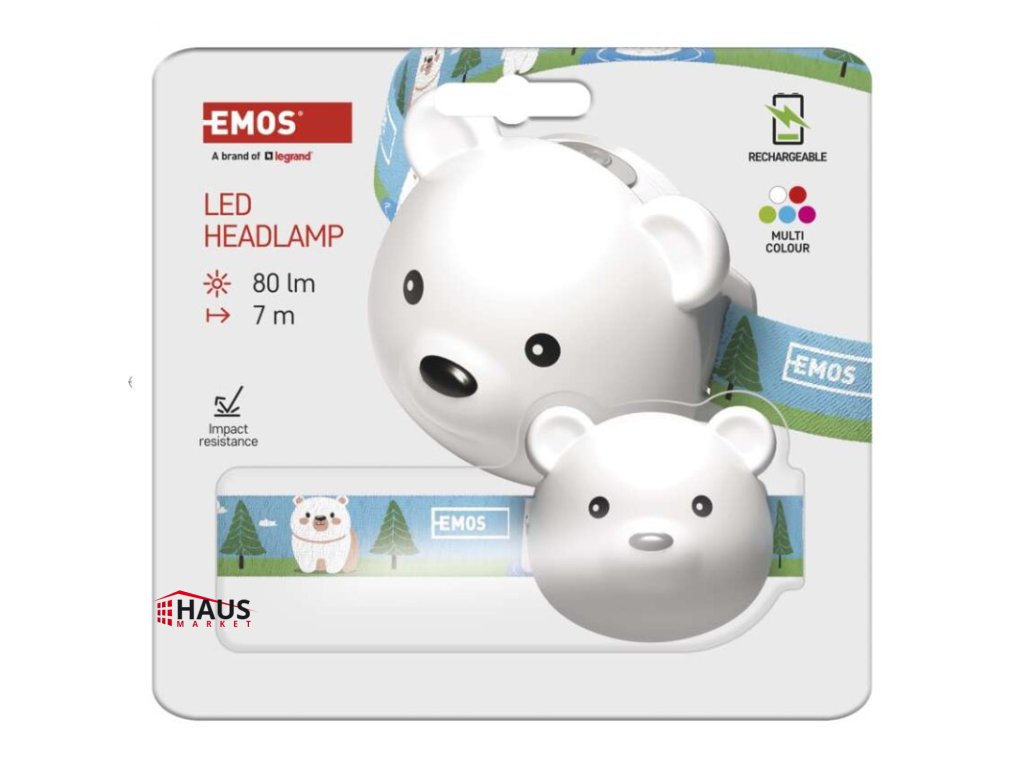 LED nabíjacia čelovka medveď P3543, 80 lm, Li-Pol 500 mAh