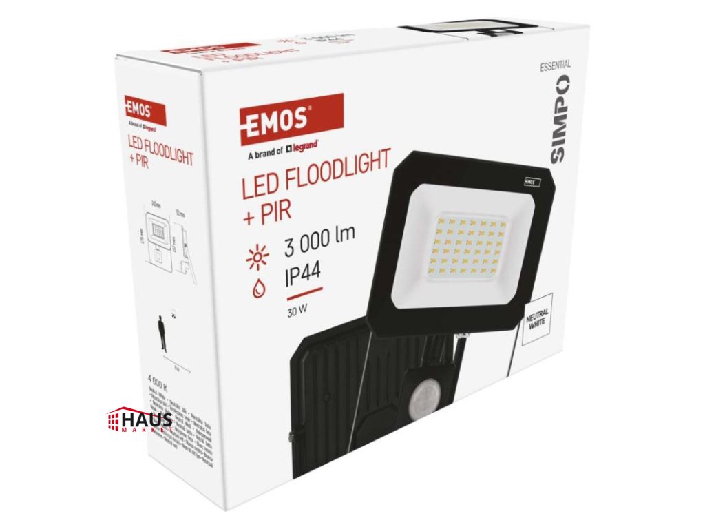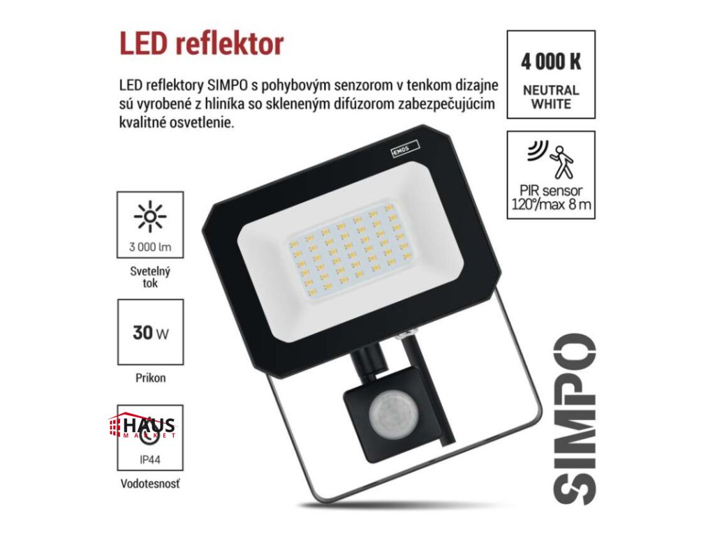 LED REFLEKTOR SIMPO 30W 3000LM IP44 NW PIR