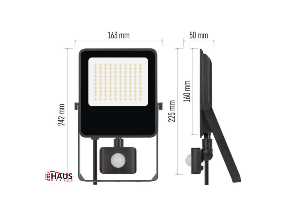 LED reflektor VISIO s pohybovým čidlom, 50 W, neutrálna biela, čierný