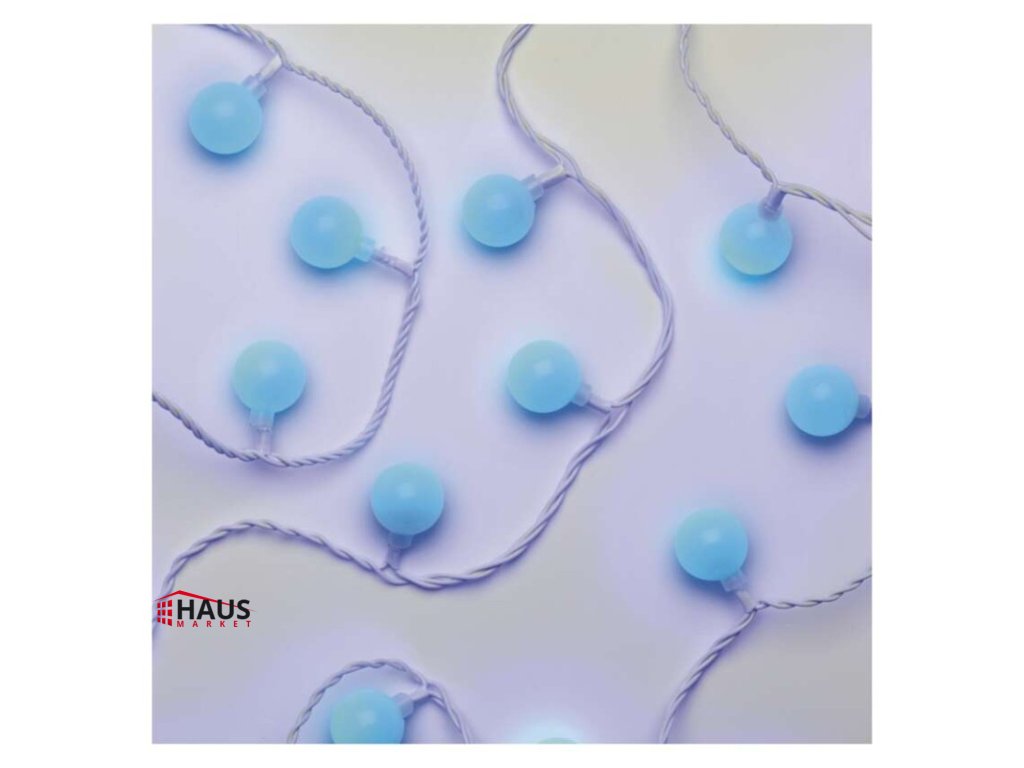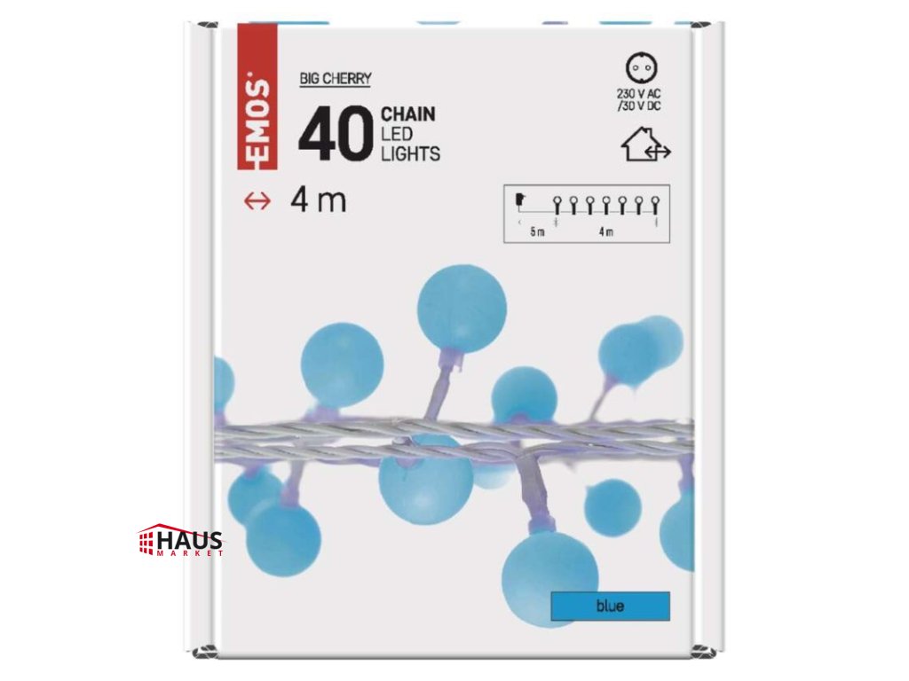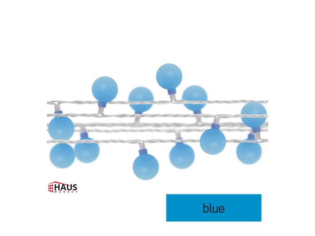 LED svetelná cherry reťaz – guličky 2,5 cm, 4 m, vonkajšia aj vnútorná, modrá, časovač
