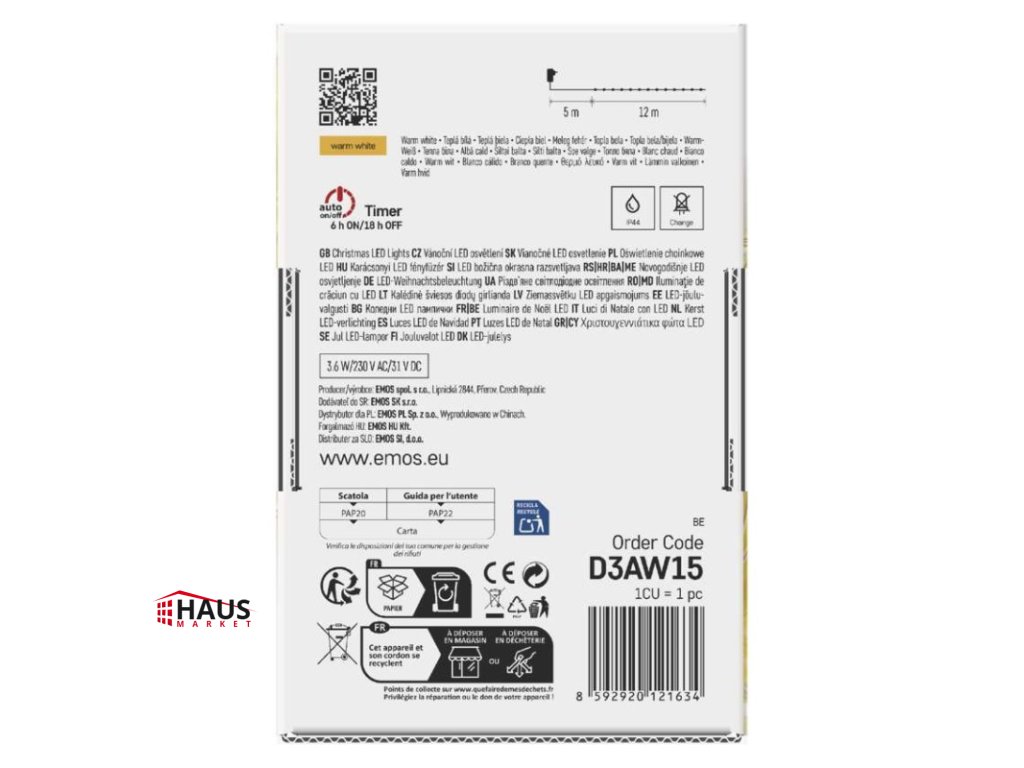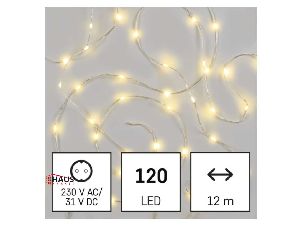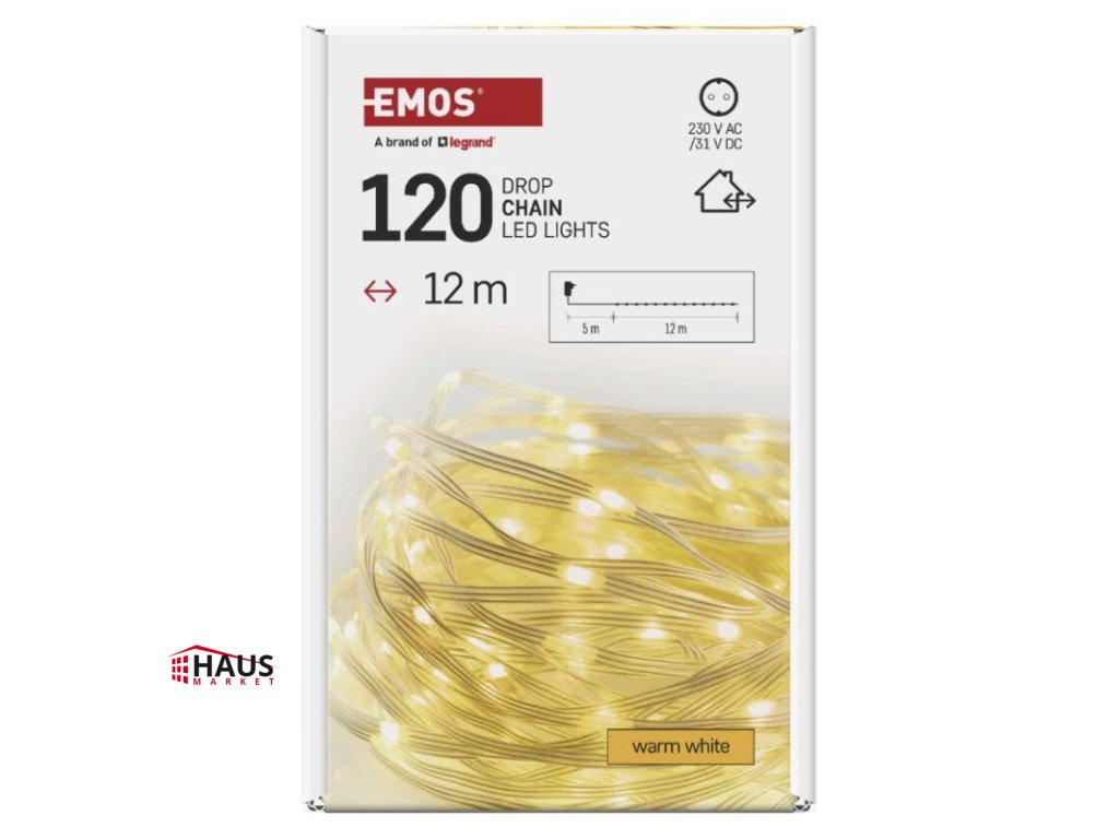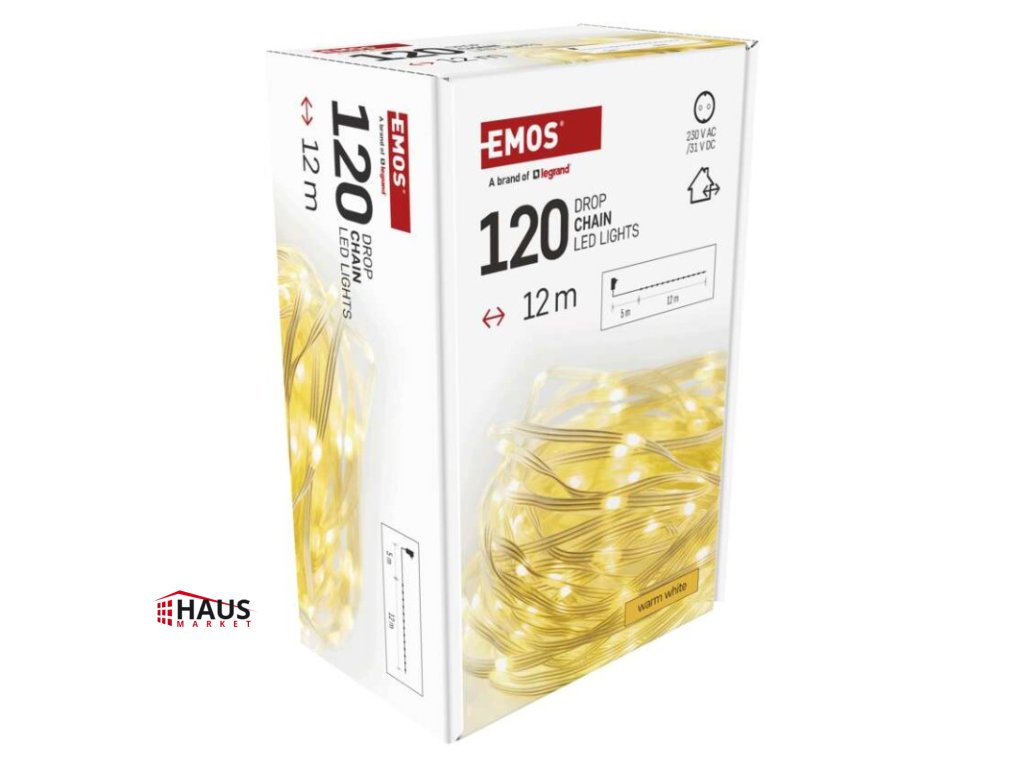 časovač: áno|diaľkový ovládač: nie|dĺžka prívodu: 5 m|farba drôtu: transparentná|farba svetla: teplá biela|funkcia: svieti|krytie: IP44|LED medzera: neuvádza sa|materiál: PVC|možnosť prepojenia: nie|počet LED: 120|použitie: vonkajšie aj vnútorné|predajný obal: 1 ks, krabica|pre výšku stromu: neuvádza sa|príkon: 3,6 W|produkt: reťaz|rozmer: 12 m|tvar: drop|typ napájania: sieťový adaptér|veľkosť LED: neuvádza sa|vstupné napätie: 230 V AC|výstupné napätie: 31 V DC|záručná doba: 2 roky|životnosť: 10 000 hodínDodatočné parametre