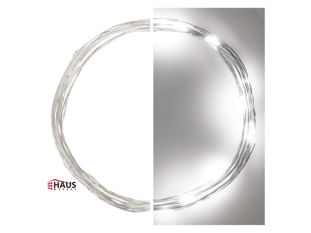 časovač: áno|diaľkový ovládač: nie|dĺžka prívodu: 0,5 m|farba drôtu: strieborná|farba svetla: studená biela|funkcia: svieti|krytie: IP20|LED medzera: 10 cm|materiál: kov|možnosť prepojenia: nie|počet LED: 20|použitie: vnútorné|predajný obal: 1 ks, krabica|pre výšku stromu: neuvádza sa|príkon: 1,28 W|produkt: nano reťaz|rozmer: 1,9 m|tvar: nano|typ napájania: batéria 2× AA (nie je súčasťou balenia)|veľkosť LED: 3 mm (nano)|vstupné napätie: neuvádza sa|výstupné napätie: 3 V DC|záručná doba: 2 roky|životnosť: 10 000 hodínDodatočné parametre