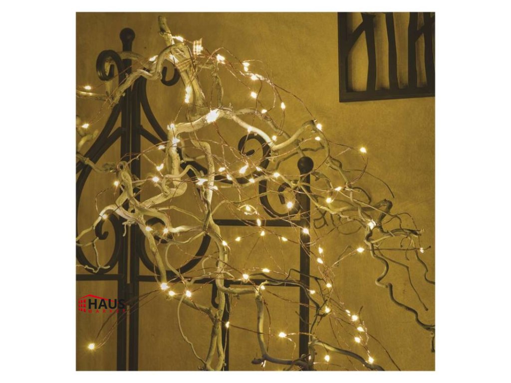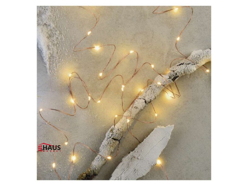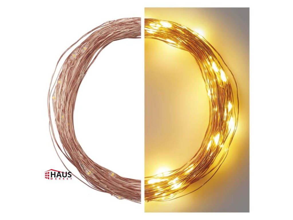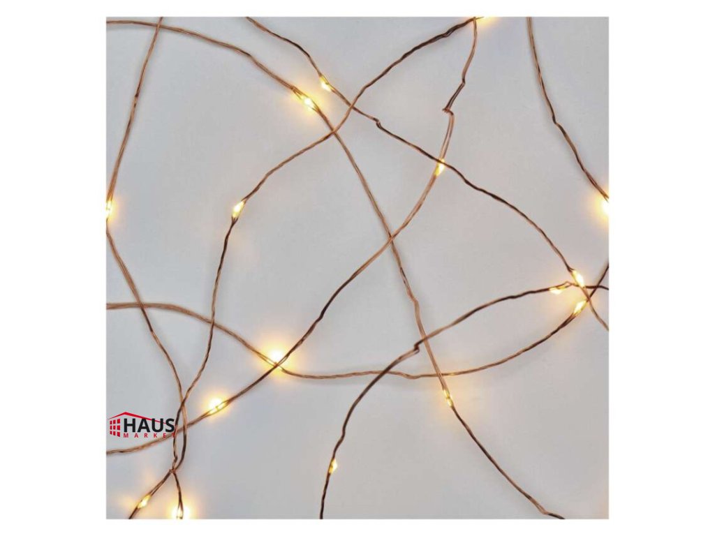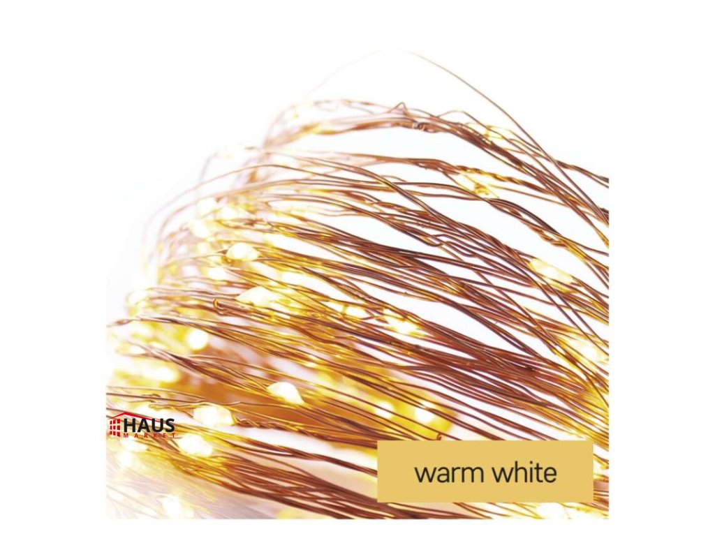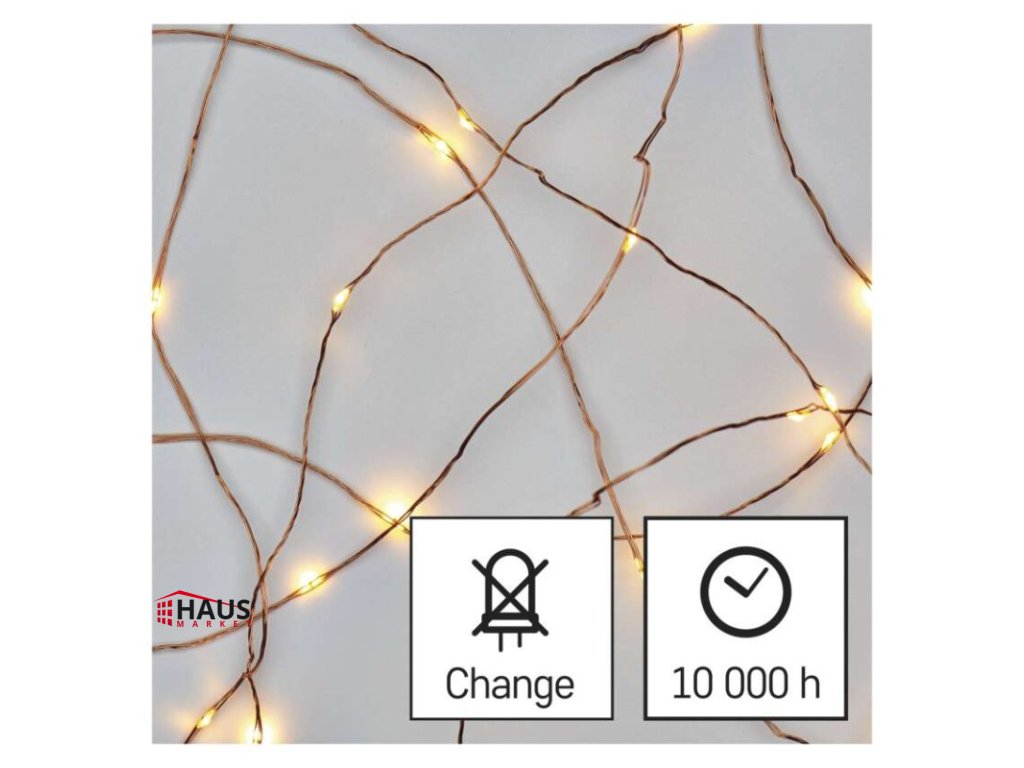 LED vianočná nano reťaz medená, 10 m, vonkajšia aj vnútorná, teplá biela, časovač