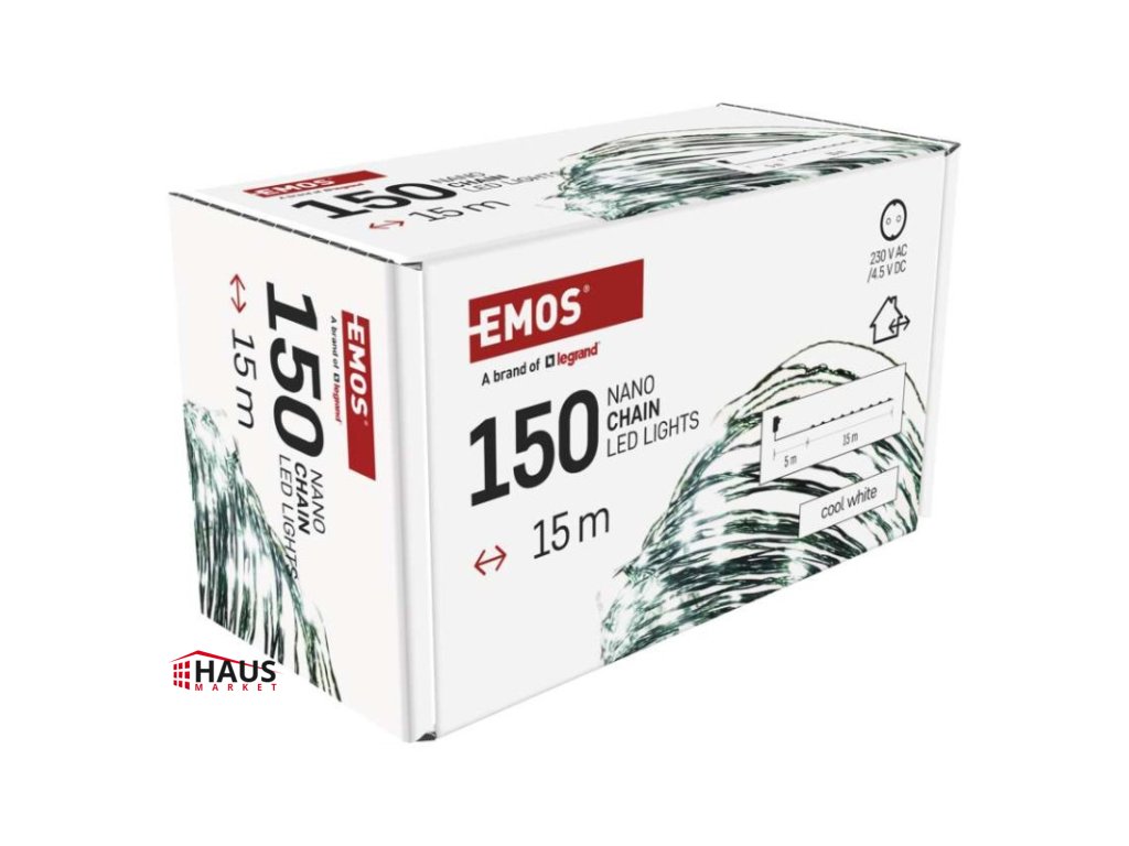 časovač: áno|diaľkový ovládač: nie|dĺžka prívodu: 5 m|farba drôtu: zelená|farba svetla: studená biela|funkcia: svieti|krytie: IP44|LED medzera: 10 cm|materiál: kov|možnosť prepojenia: nie|počet LED: 150|použitie: vonkajšie aj vnútorné|predajný obal: 1 ks, krabica|pre výšku stromu: 170 cm|príkon: 2,7 W|produkt: nano reťaz|rozmer: 15 m|tvar: nano|typ napájania: sieťový adaptér|veľkosť LED: 3 mm (nano)|vstupné napätie: 230 V AC|výstupné napätie: 4,5 V DC|záručná doba: 2 roky|životnosť: 10 000 hodínDodatočné parametre
