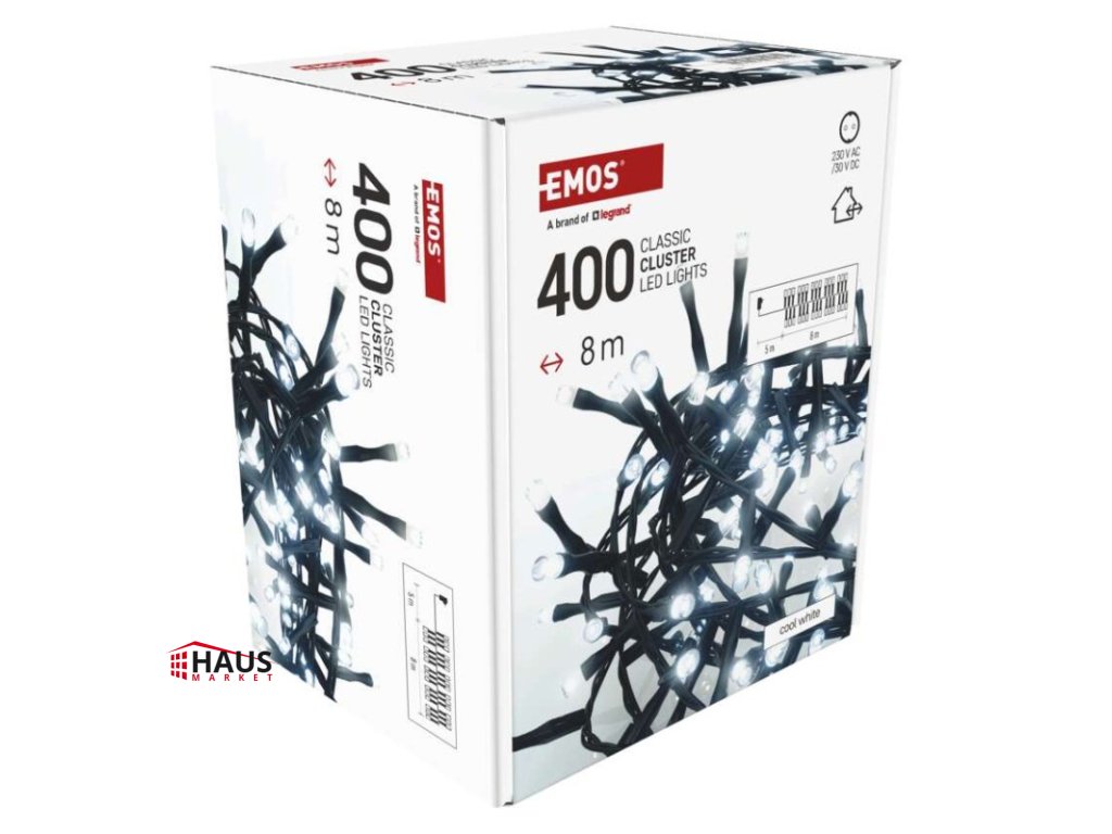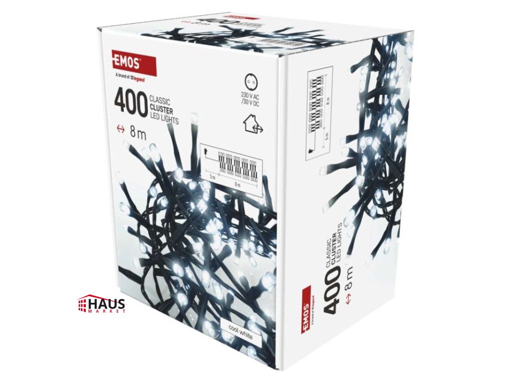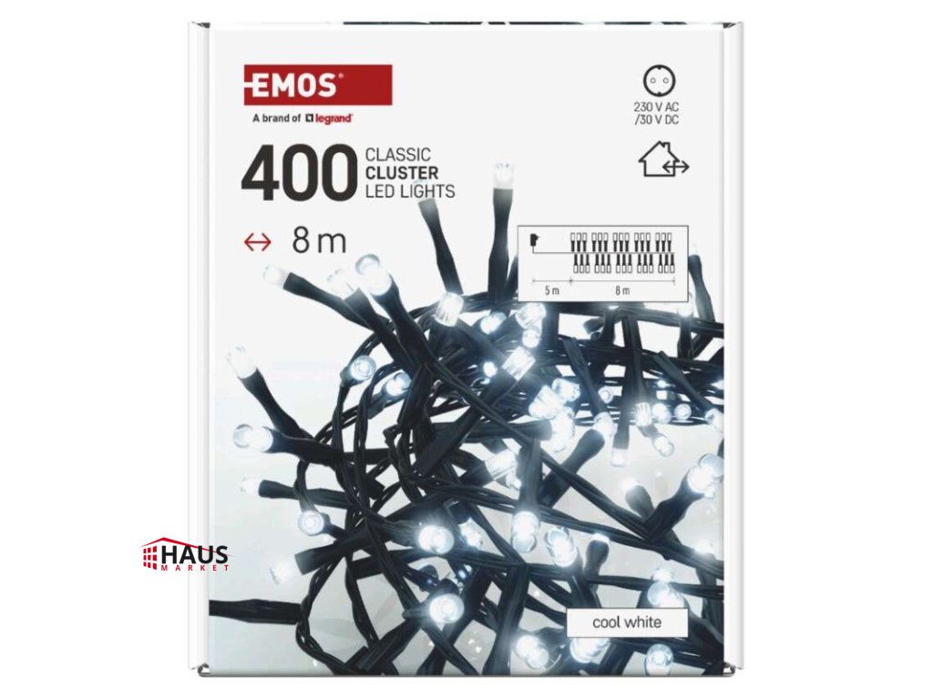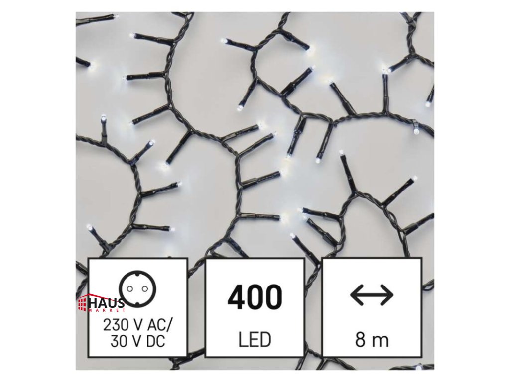 LED vianočná reťaz – cluster, 8 m, vonkajšia aj vnútorná, studená biela, časovač