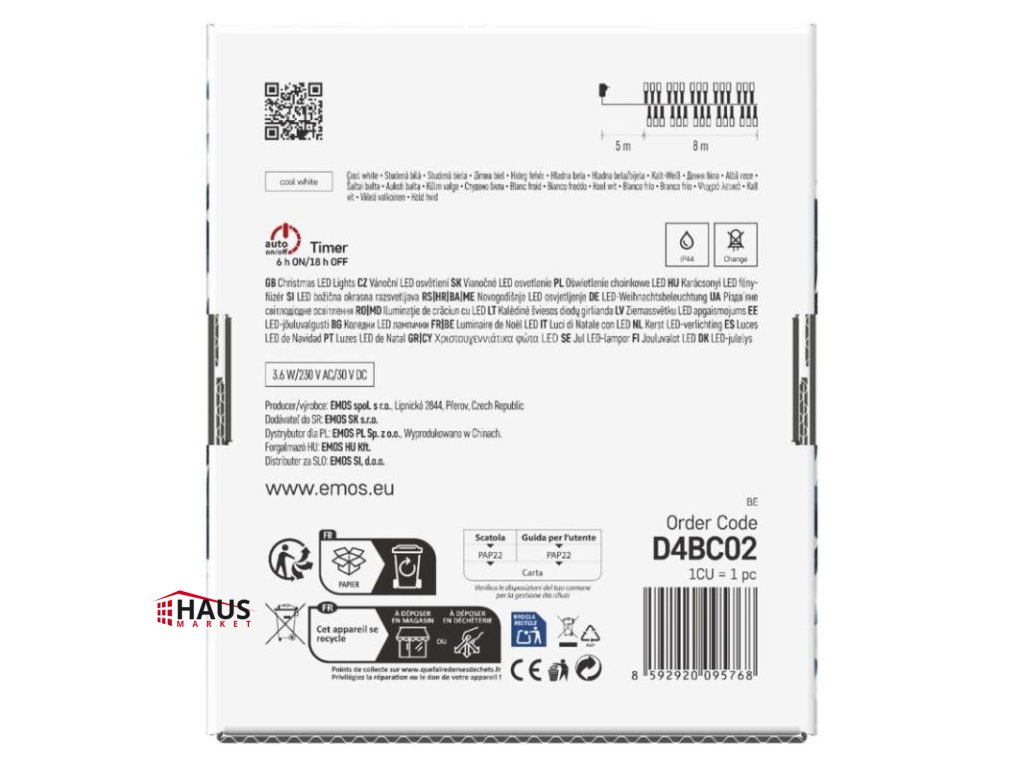 časovač: áno|diaľkový ovládač: nie|dĺžka prívodu: 5 m|farba drôtu: čierna|farba svetla: studená biela|funkcia: svieti|krytie: IP44|LED medzera: 2 cm|materiál: PVC|možnosť prepojenia: nie|počet LED: 400|použitie: vonkajšie aj vnútorné|predajný obal: 1 ks, krabica|pre výšku stromu: neuvádza sa|príkon: 3,6 W|produkt: ježko|rozmer: 8 m|tvar: klasický|typ napájania: sieťový adaptér|veľkosť LED: 3 mm|vstupné napätie: 230 V AC|výstupné napätie: 30 V DC|záručná doba: 2 roky|životnosť: 10 000 hodínDodatočné parametre