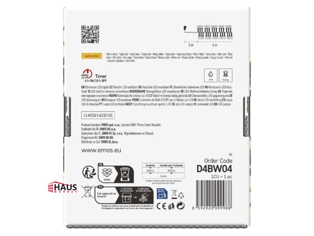 časovač: áno|diaľkový ovládač: nie|dĺžka prívodu: 5 m|farba drôtu: čierna|farba svetla: teplá biela|funkcia: svieti|krytie: IP44|LED medzera: 2 cm|materiál: PVC|možnosť prepojenia: nie|počet LED: 300|použitie: vonkajšie aj vnútorné|predajný obal: 1 ks, krabica|pre výšku stromu: neuvádza sa|príkon: 3,6 W|produkt: ježko|rozmer: 6 m|tvar: klasický|typ napájania: sieťový adaptér|veľkosť LED: 3 mm|vstupné napätie: 230 V AC|výstupné napätie: 30 V DC|záručná doba: 2 roky|životnosť: 10 000 hodínDodatočné parametre