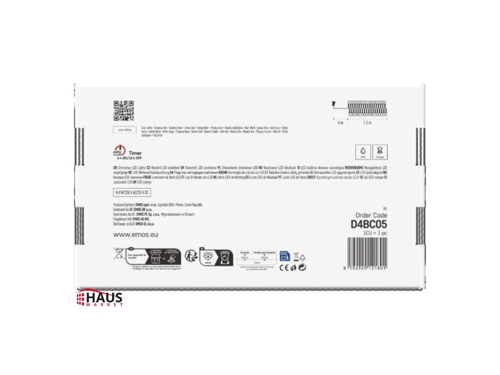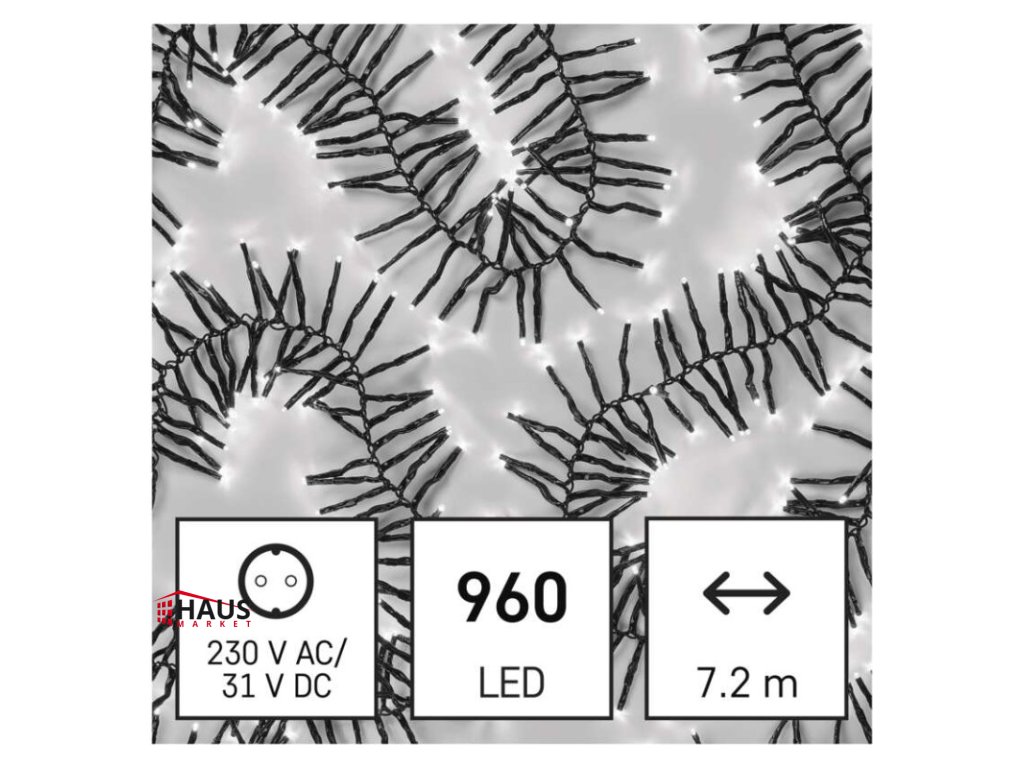 časovač: áno|diaľkový ovládač: nie|dĺžka prívodu: 5 m|farba drôtu: čierna|farba svetla: studená biela|funkcia: 8 módov (multifunkcie)|krytie: IP44|LED medzera: neuvádza sa|materiál: PVC|možnosť prepojenia: nie|počet LED: 960|použitie: vonkajšie aj vnútorné|predajný obal: 1 ks, krabica|pre výšku stromu: neuvádza sa|príkon: 8,4 W|produkt: ježko|rozmer: 7,2 m|tvar: neuvádza sa|typ napájania: sieťový adaptér|veľkosť LED: neuvádza sa|vstupné napätie: 230 V AC|výstupné napätie: 31 V DC|záručná doba: 2 roky|životnosť: 10 000 hodínDodatočné parametre
