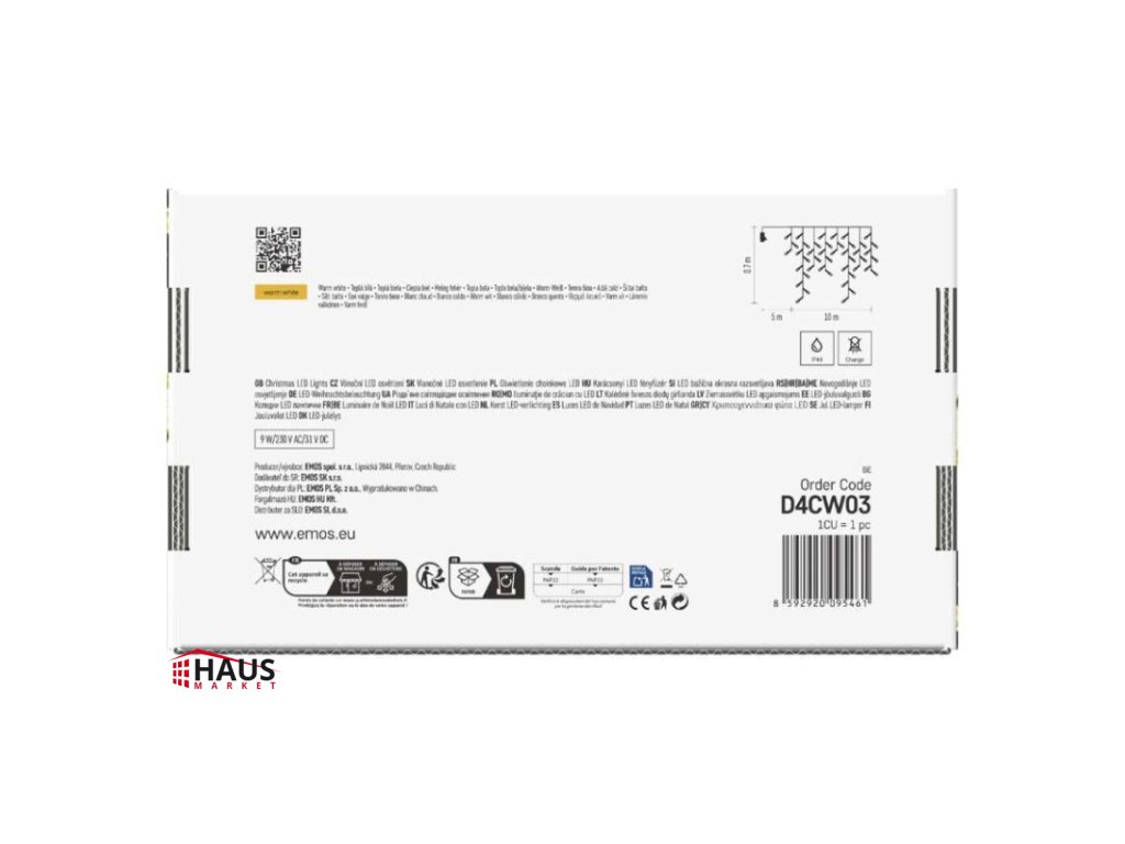 LED vianočné cencúle, 10 m, vonkajšie aj vnútorné, teplá biela, programy, časovač