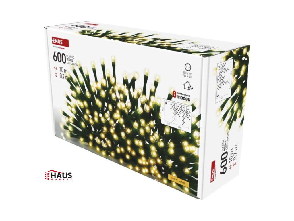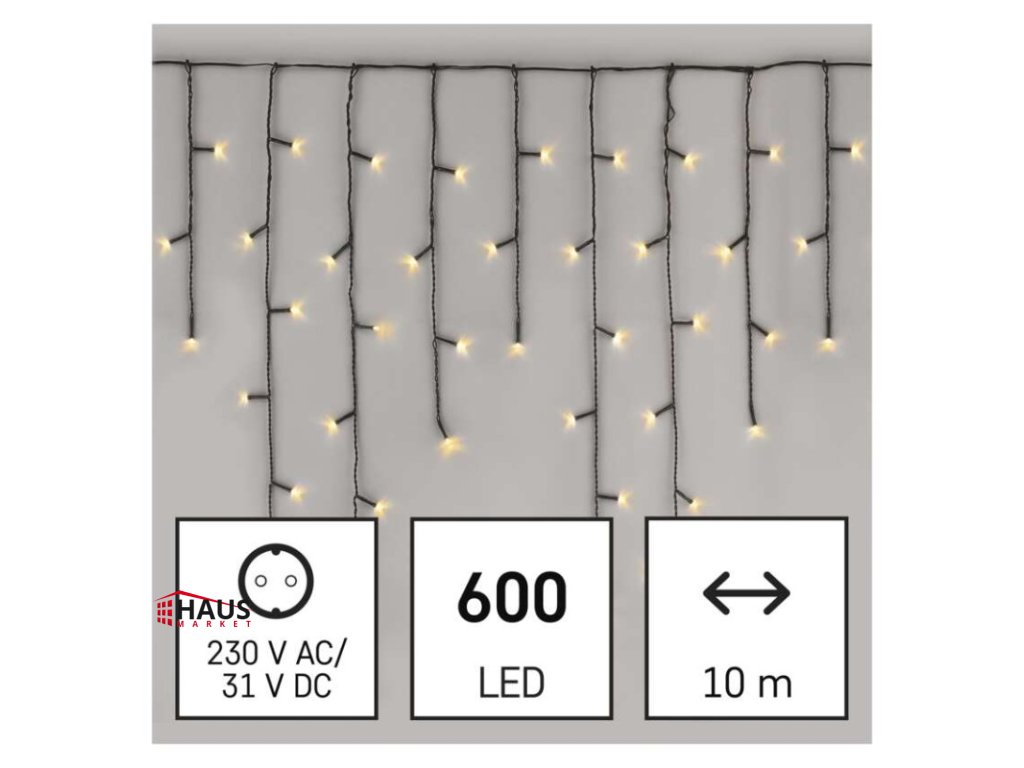 časovač: áno|diaľkový ovládač: nie|dĺžka prívodu: 5 m|farba drôtu: zelená|farba svetla: teplá biela|funkcia: 8 módov (multifunkcie)|krytie: IP44|LED medzera: 10 cm|materiál: PVC|možnosť prepojenia: nie|počet LED: 600|použitie: vonkajšie aj vnútorné|predajný obal: 1 ks, krabica|pre výšku stromu: neuvádza sa|príkon: 9 W|produkt: kvaple|rozmer: 10 × 0,7 m|tvar: klasický|typ napájania: sieťový adaptér|veľkosť LED: 5 mm|vstupné napätie: 230 V AC|výstupné napätie: 31 V DC|záručná doba: 2 roky|životnosť: 10 000 hodínDodatočné parametre