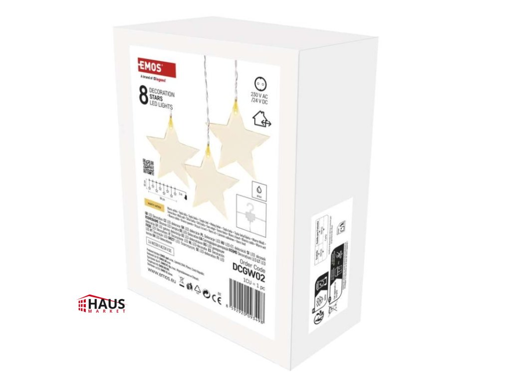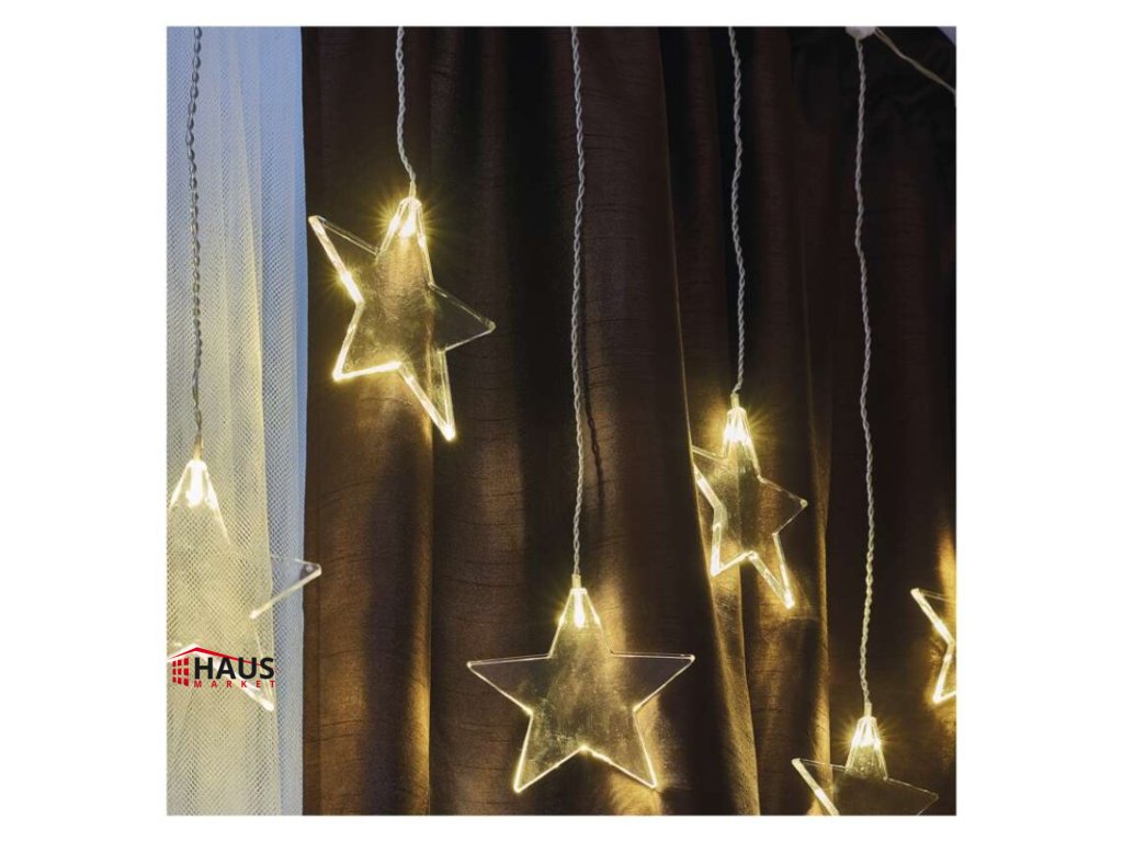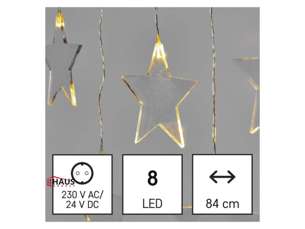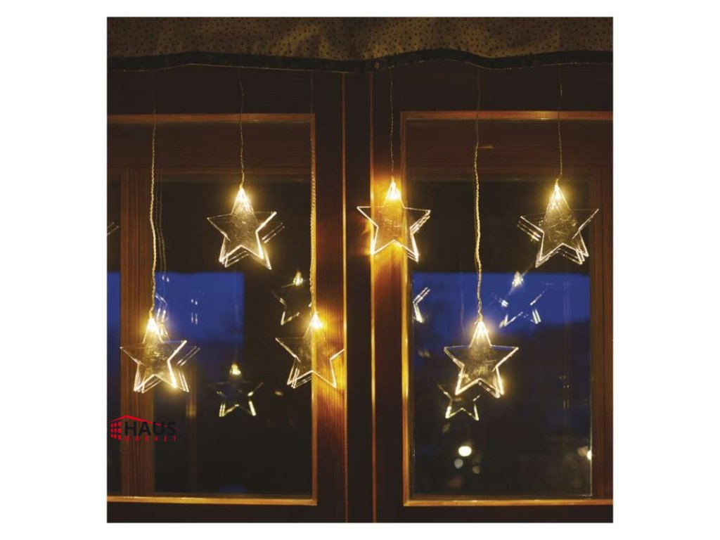 LED vianočný záves – hviezdy, 45x84 cm, vonkajší aj vnútorný, teplá biela