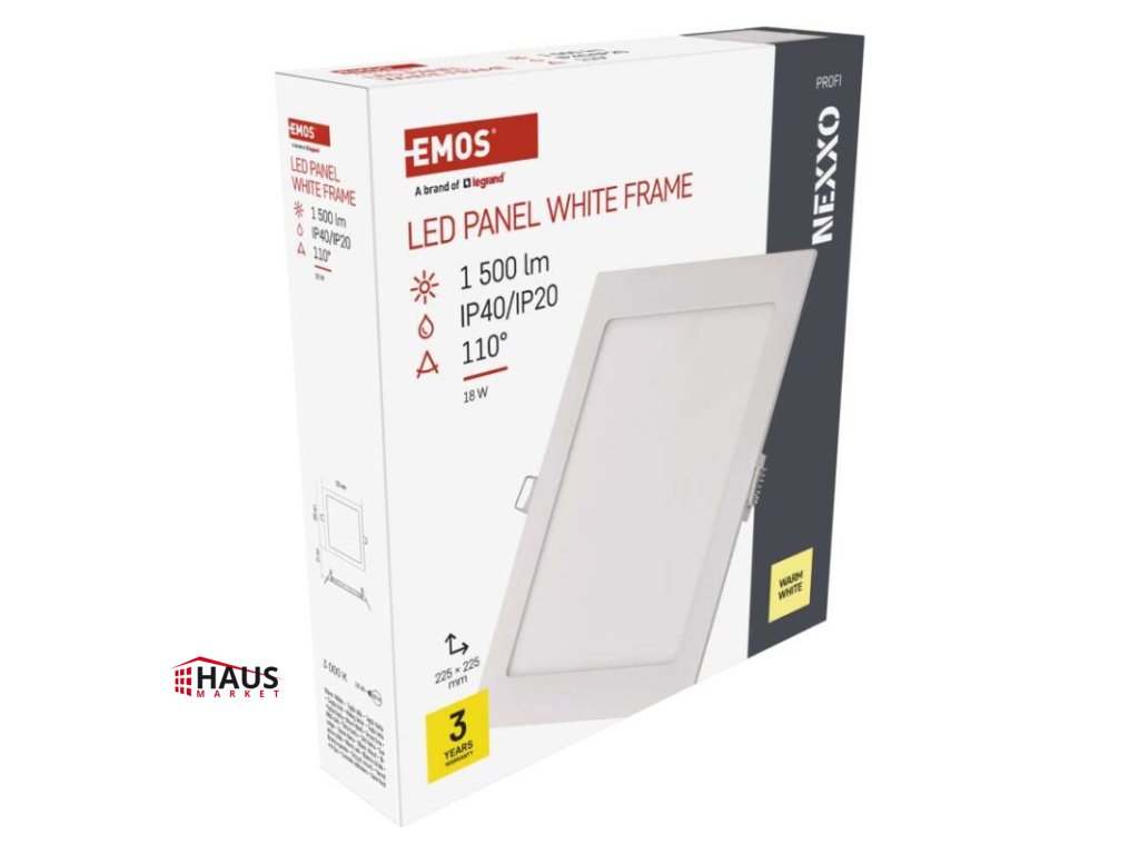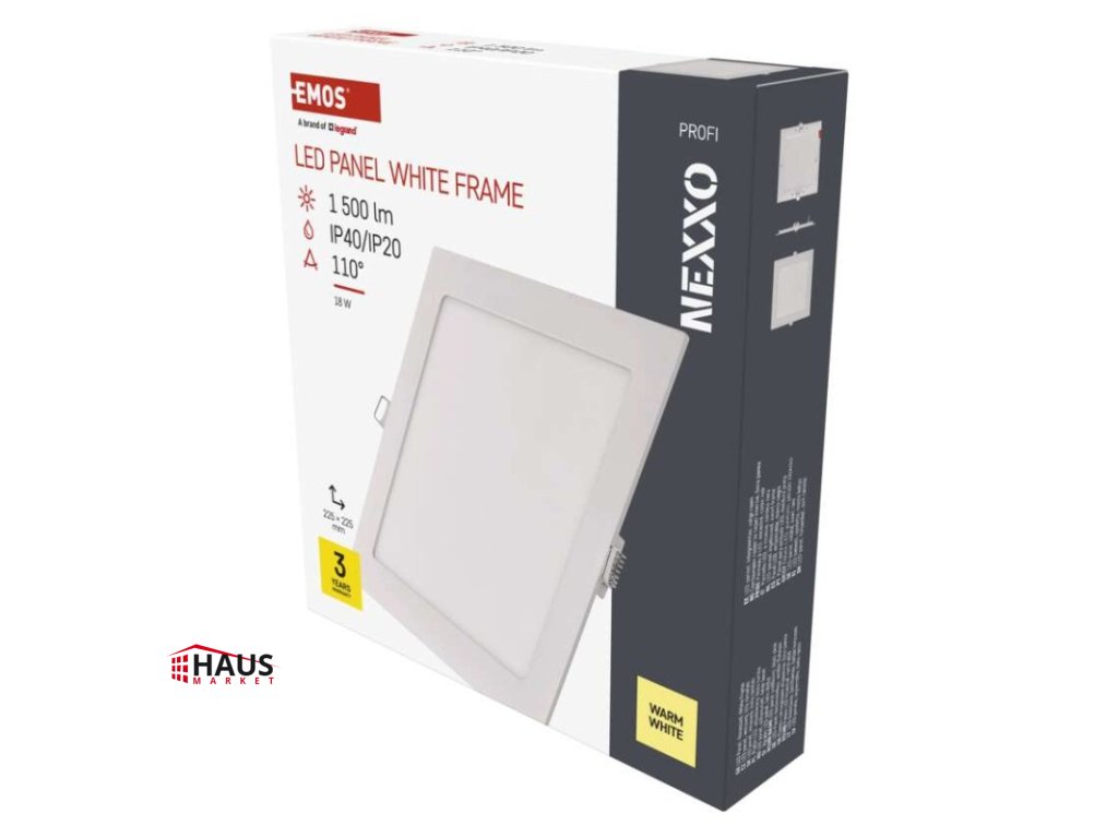 diaľkový ovládač: nie|do chodby a na schodisko: áno|do dielne a garáže: nie|do kancelárie: áno|do kuchyne: áno|do kúpeľne: nie|do obývačky, spálne a detskej izby: áno|dosah senzora: nemá senzor|do záhrady a na balkón: nie|farba svetla: teplá biela|farba tela: biela|flicker-free: áno|frekvencia: 50/60 Hz|index podania farieb (CRI): Ra > 82|kategória: PROFI|krytie: IP40/IP20|materiál difúzora: plast (PS)|materiál LGP: PMMA|materiál tela: hliník|montážny otvor: 205 × 205 mm|možnosť stmievania: nie|náhrada za žiarovku: 100 W|napätie: 220–240 V|pohybový senzor: nie|predajný obal: 1 ks, krabica|príkon: 18 W|prúd: 84 mA|rada: NEXXO|rozmer: 225 × 225 × 21 mm|spôsob montáže: vstavané|svetelná účinnosť: 83 lm/W|svetelný tok: 1 500 lm|teplota chromatičnosti: 3 000 K|tvar: štvorec|typ difúzora: mliečny|typ svietidla: klasické svietidlo|účinník: > 0,9|UGR<: neuvádza sa|uhol vyžarovania: 110°|umiestnenie: stropné|výstupný prúd zo zdroja: 300 mA|záručná doba: 3 roky|zdroj svetla: LED|životnosť: 30 000 hodínDodatočné parametre
