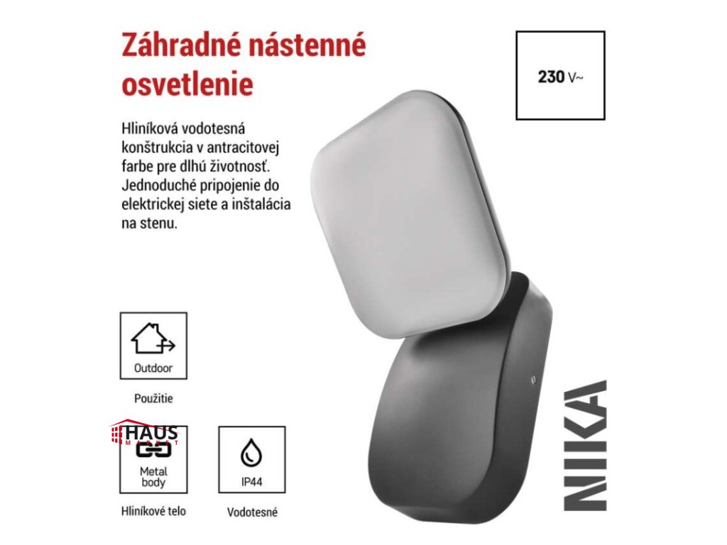 energetická trieda použitého zdroja svetla: G|farba: antracit|farba svetla: Teplá biela|fotovoltaický článok: nie|frekvencia: 50/60 Hz|index podania farieb (CRI): > 80|kategória: CLASSIC|krytie: IP44|materiál: hliník|materiál difúzora: plast|napájanie: 230 V AC|napätie: 220-240 V~|pätica (uchytenie žiarovky): –|predajný obal: 1 ks, krabička|príkon: 12,5 W|rada: NIKA|rozmer: 120 × 120 × 200 mm|rozsah pracovnej teploty: -20 ~ +40 °C|Rozsah snímača PIR: –|senzor PIR: Nie|súmrakový spínač: nie|svetelný tok: 900 lm|teplota chromatičnosti: 3000 K|vstavaný vypínač: nie|zdroj svetla: LED|žiarovka súčasťou balenia: –|životnosť: 25 000 hDodatočné parametre