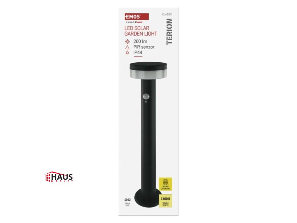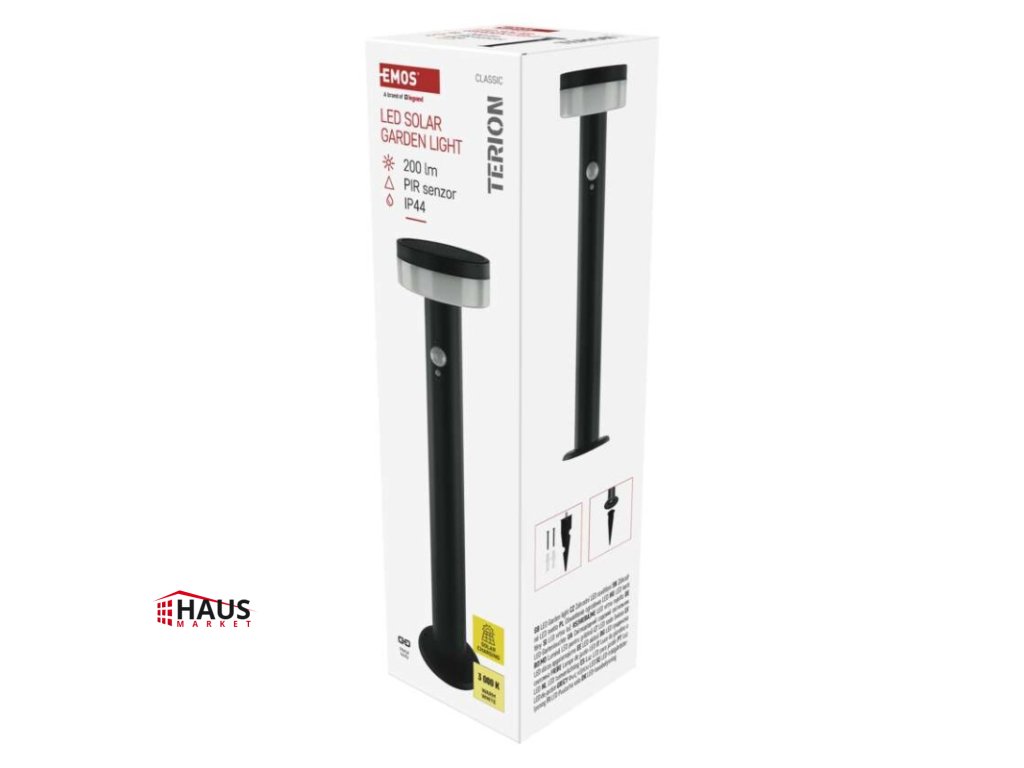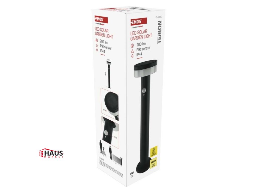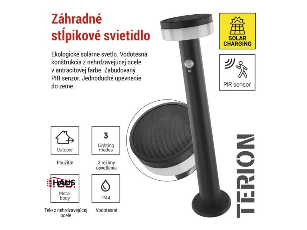 energetická trieda použitého zdroja svetla: –|farba: antracit|farba svetla: Teplá biela|fotovoltaický článok: 0,88 W|frekvencia: –|index podania farieb (CRI): > 80|kategória: CLASSIC|krytie: IP44|materiál: nehrdzavejúca oceľ|materiál difúzora: plast|napájanie: Li-Ion batéria 3,7 V/1 200 mAh|napätie: –|pätica (uchytenie žiarovky): –|predajný obal: 1 ks, krabička|príkon: 2 W|rada: TERION|rozmer: 125 × 125 × 500 mm|rozsah pracovnej teploty: 0 ~ +40 °C|Rozsah snímača PIR: 10 m|senzor PIR: áno|súmrakový spínač: áno|svetelný tok: max. 200 lm|teplota chromatičnosti: 3000 K|vstavaný vypínač: áno|zdroj svetla: LED|žiarovka súčasťou balenia: –|životnosť: 25 000 hDodatočné parametre