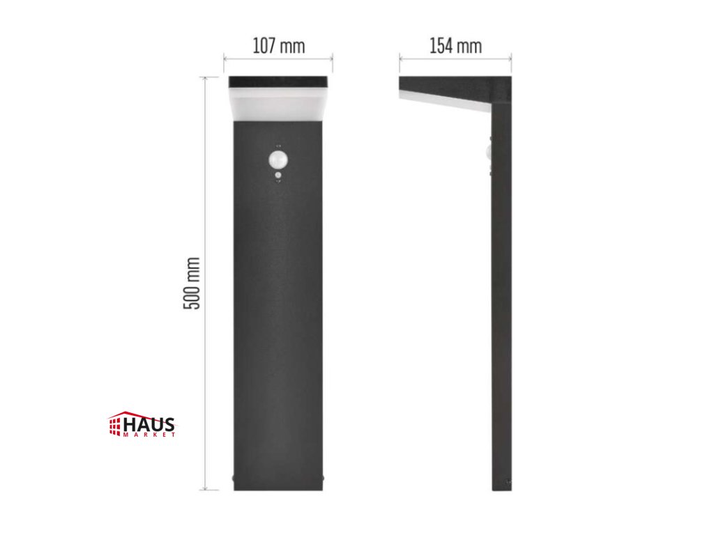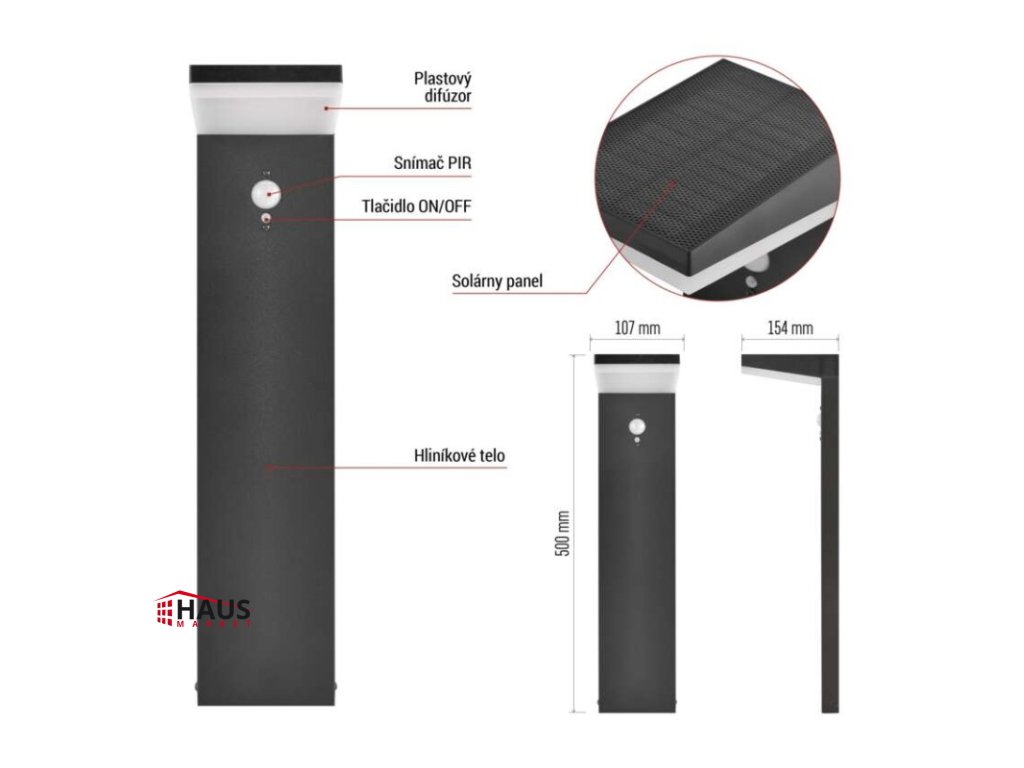 LED záhradné solárne stĺpikové svietidlo VEREA, senzor súmraku, 10,7 x 15,4 x 50 cm