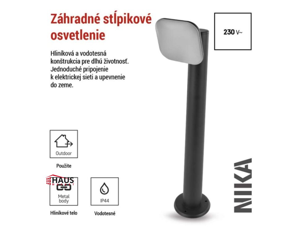 energetická trieda použitého zdroja svetla: G|farba: antracit|farba svetla: Teplá biela|fotovoltaický článok: nie|frekvencia: 50/60 Hz|index podania farieb (CRI): > 80|kategória: CLASSIC|krytie: IP44|materiál: hliník|materiál difúzora: plast|napájanie: 230 V AC|napätie: 220-240 V~|pätica (uchytenie žiarovky): –|predajný obal: 1 ks, krabička|príkon: 12,5 W|rada: NIKA|rozmer: 120 × 120 × 500 mm|rozsah pracovnej teploty: -20 ~ +40 °C|Rozsah snímača PIR: –|senzor PIR: Nie|súmrakový spínač: nie|svetelný tok: 900 lm|teplota chromatičnosti: 3000 K|vstavaný vypínač: nie|zdroj svetla: LED|žiarovka súčasťou balenia: –|životnosť: 25 000 hDodatočné parametre