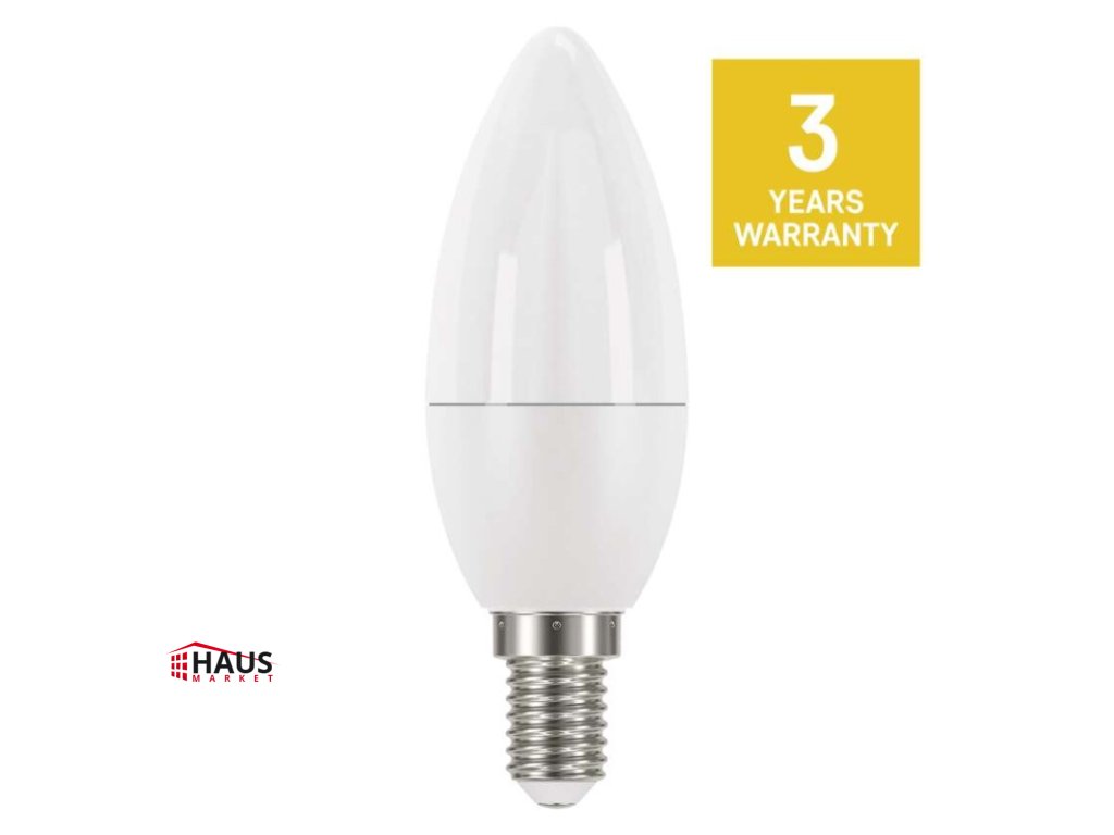 energetická trieda: E|farba svetla: teplá biela|index podania farieb (CRI): Ra >94|kompatibilita: –|náhrada za žiarovku: 40 W|napätie: 230 V~/50 Hz|notifikácie do mobilnej aplikácie: –|ovládanie hlasovými asistentmi: –|pätica (uchytenie žiarovky): E14|počet čipov: 18|počet spínacích cyklov: 25 000|podporované OS: –|predajný obal: 1 ks, krabička|prenosová frekvencia: –|príkon: 4,2 W|protokol: –|rada: TRUE LIGHT|rozmer: 102 × 35 × 35 mm|stmievateľná: nie|svetelná účinnosť: 112 lm/W|svetelný tok: 470 lm|technológia: LED|teplota chromatičnosti: 2 700 K|tvar: sviečka|typ čipov: SMD|účinník: 0.51|uhol vyžarovania: 260°|záručná doba: 3 roky|životnosť: 30 000 hodínDodatočné parametre